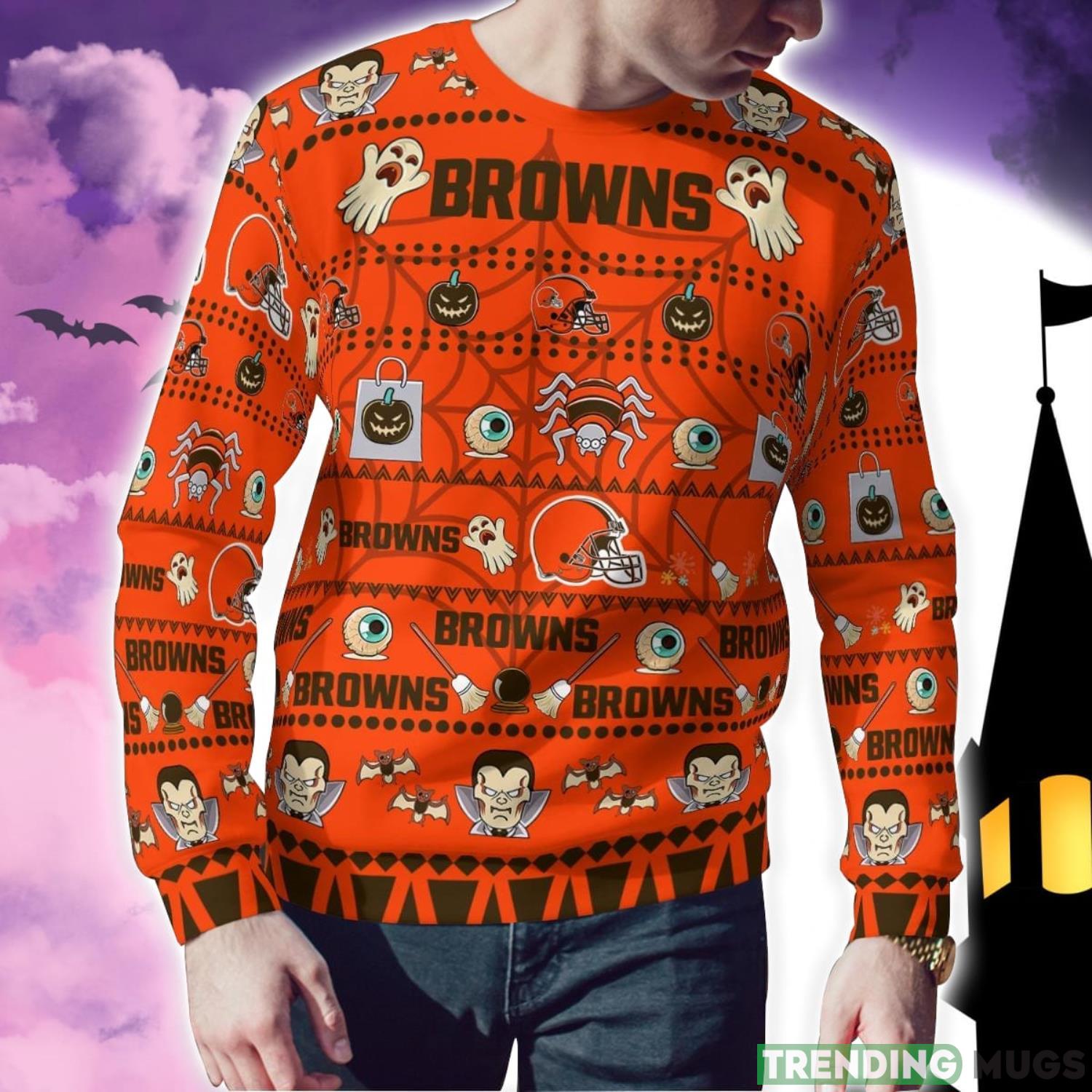 Don’t miss out on the opportunity to own this Cleveland Browns Pumpkin Halloween Spooky Ghost Pattern Funny 3D Sweater. Grab yours today and be the envy of all your friends this Halloween season.