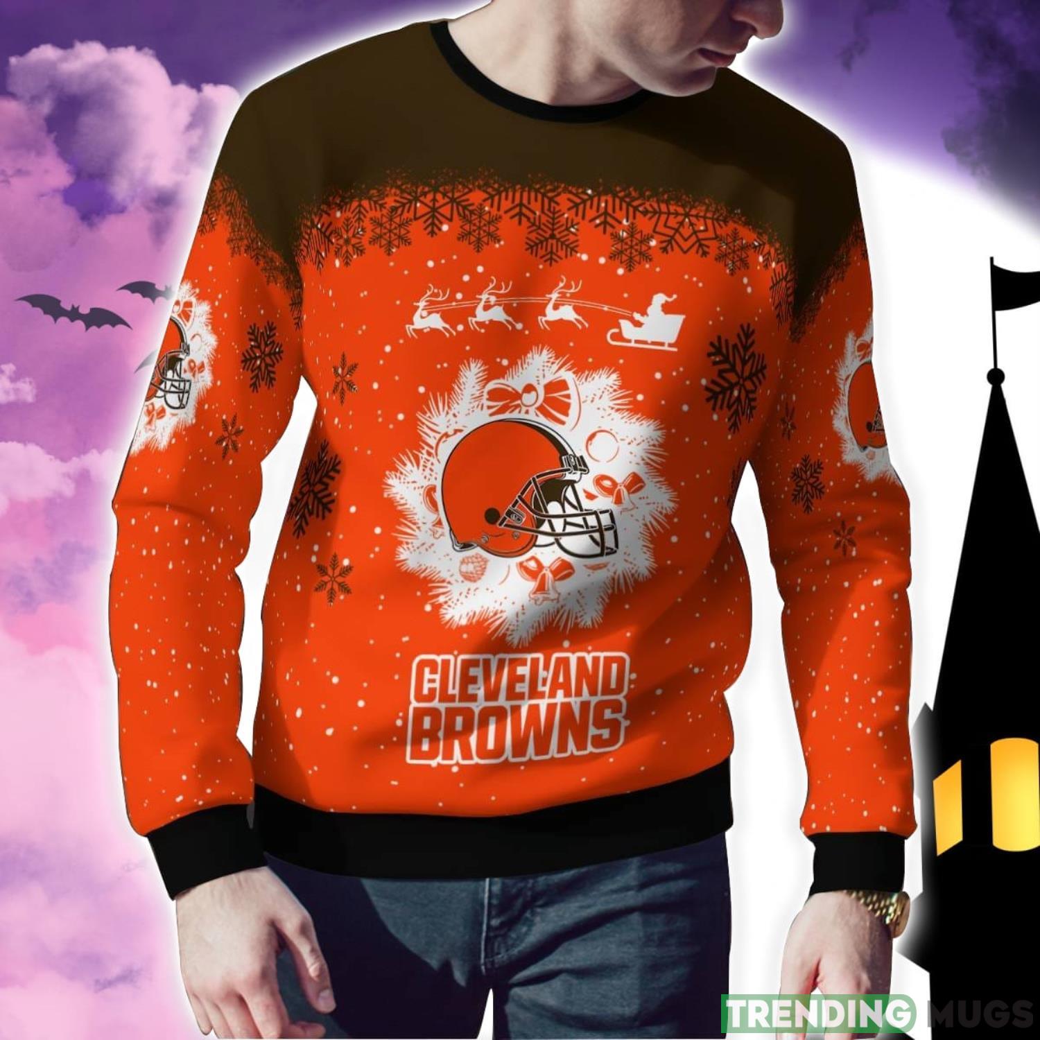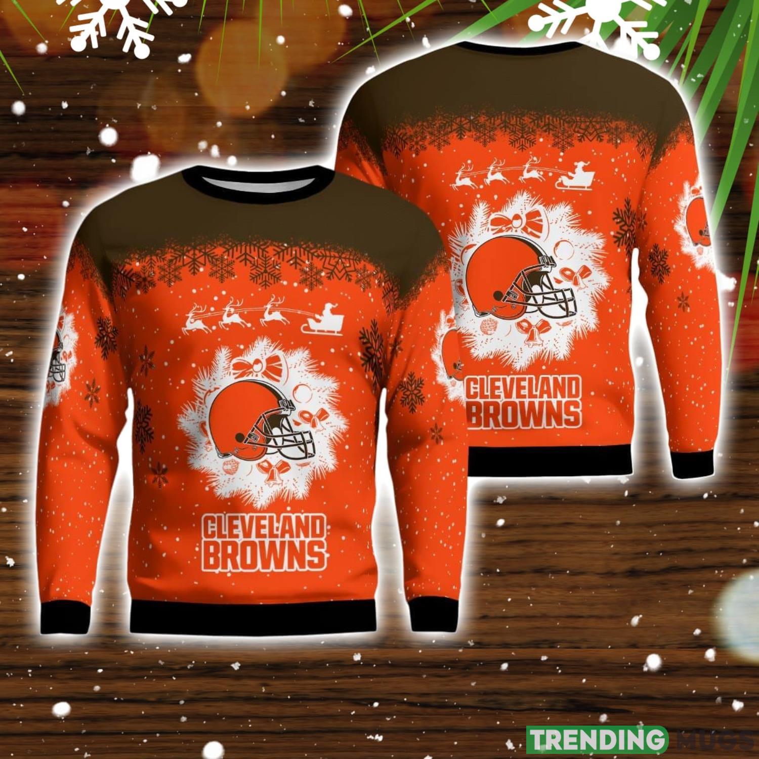 Cleveland Browns Santa sleigh driving reindeer Pattern Ugly Christmas Sweater 3D Sweater