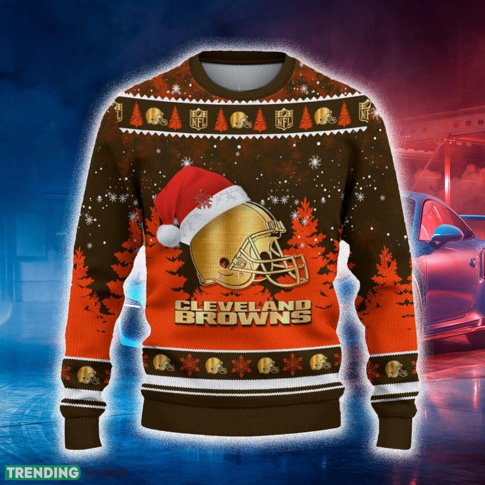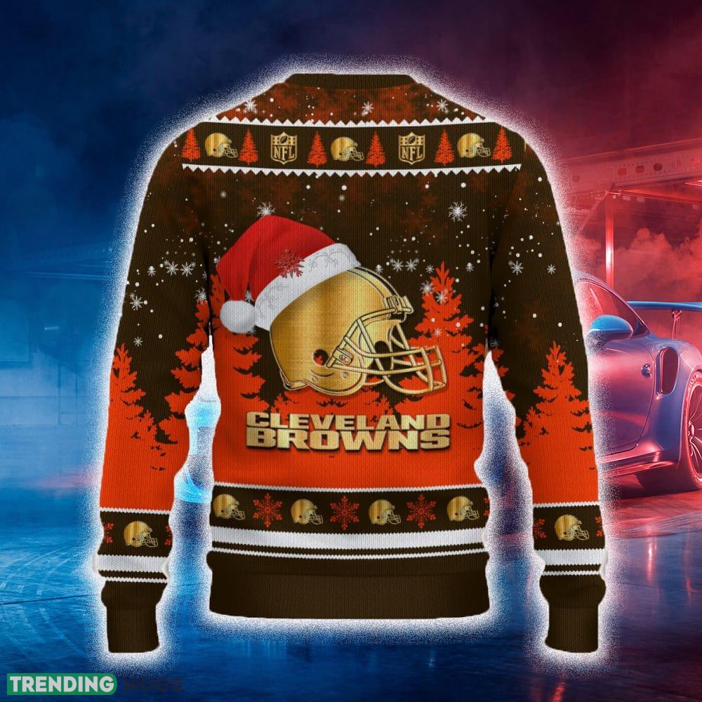 Cleveland Browns Ugly Christmas Sweater Tree Santa Hat Car For Fans Gift Familys Holidays 3D Sweater