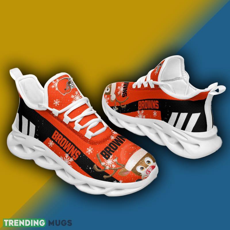 This Cleveland Browns X-max Reindeer Max Soul Shoes Trademark Christmas Sneakers is a breathable, lightweight, and comfortable casual outdoor shoe that has a unique design. It is made of a mesh fabric which makes it sweat absorbent and breathable, while the rubber bottom ensures traction, comfort, and durability. It is available in two colors: black or white sole. There are two styles of shoelace holes so you can choose your preference.