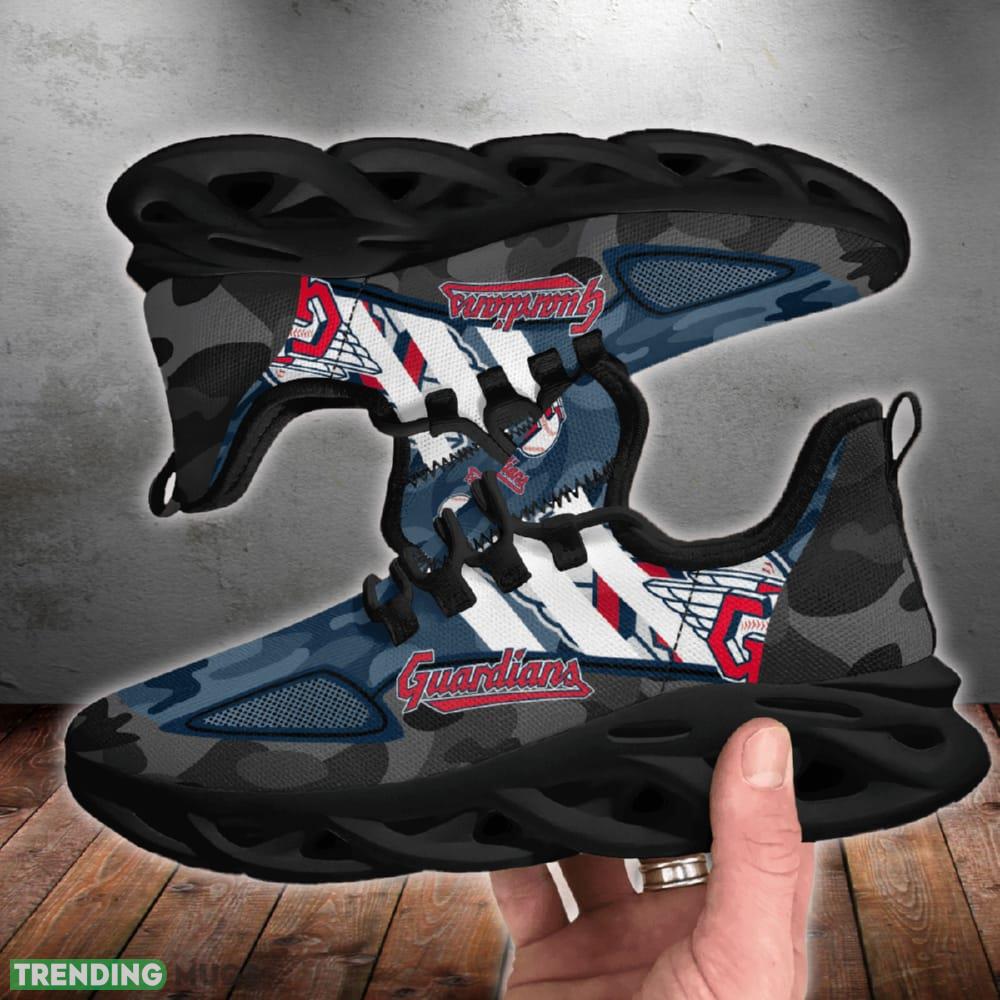 This Cleveland Guardians Military Camouflage Energize Chunky Shoes New Max Soul Sneakers Men Gift is a breathable, lightweight, and comfortable casual outdoor shoe that has a unique design. It is made of a mesh fabric which makes it sweat absorbent and breathable, while the rubber bottom ensures traction, comfort, and durability. It is available in two colors: black or white sole. There are two styles of shoelace holes so you can choose your preference.
