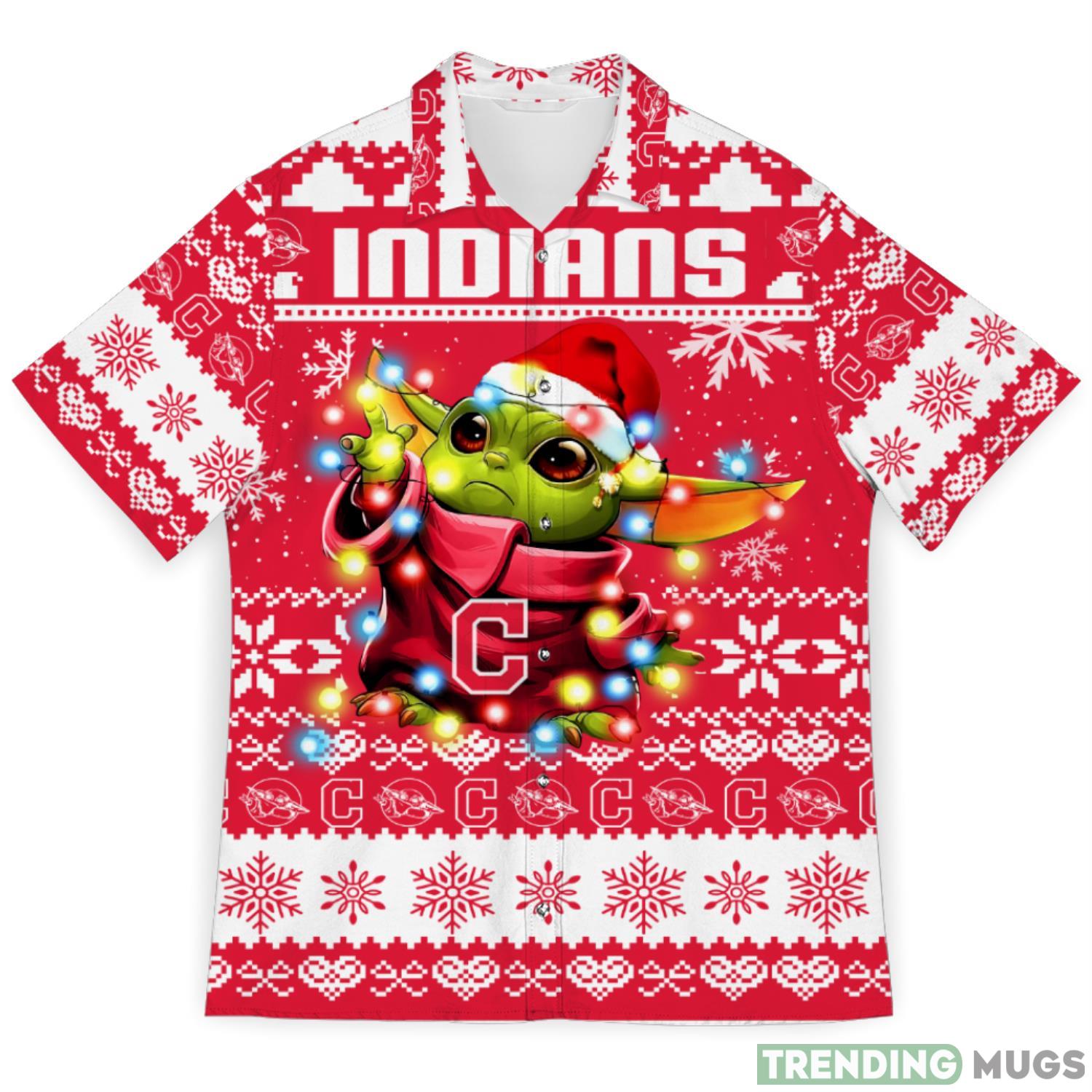 Embrace the holiday spirit in style with our Cleveland Indians Baby Yoda Star Wars Ugly Christmas Sweater Pattern 3D Hawaiian Shirt. Order yours today and make this Christmas one to remember!