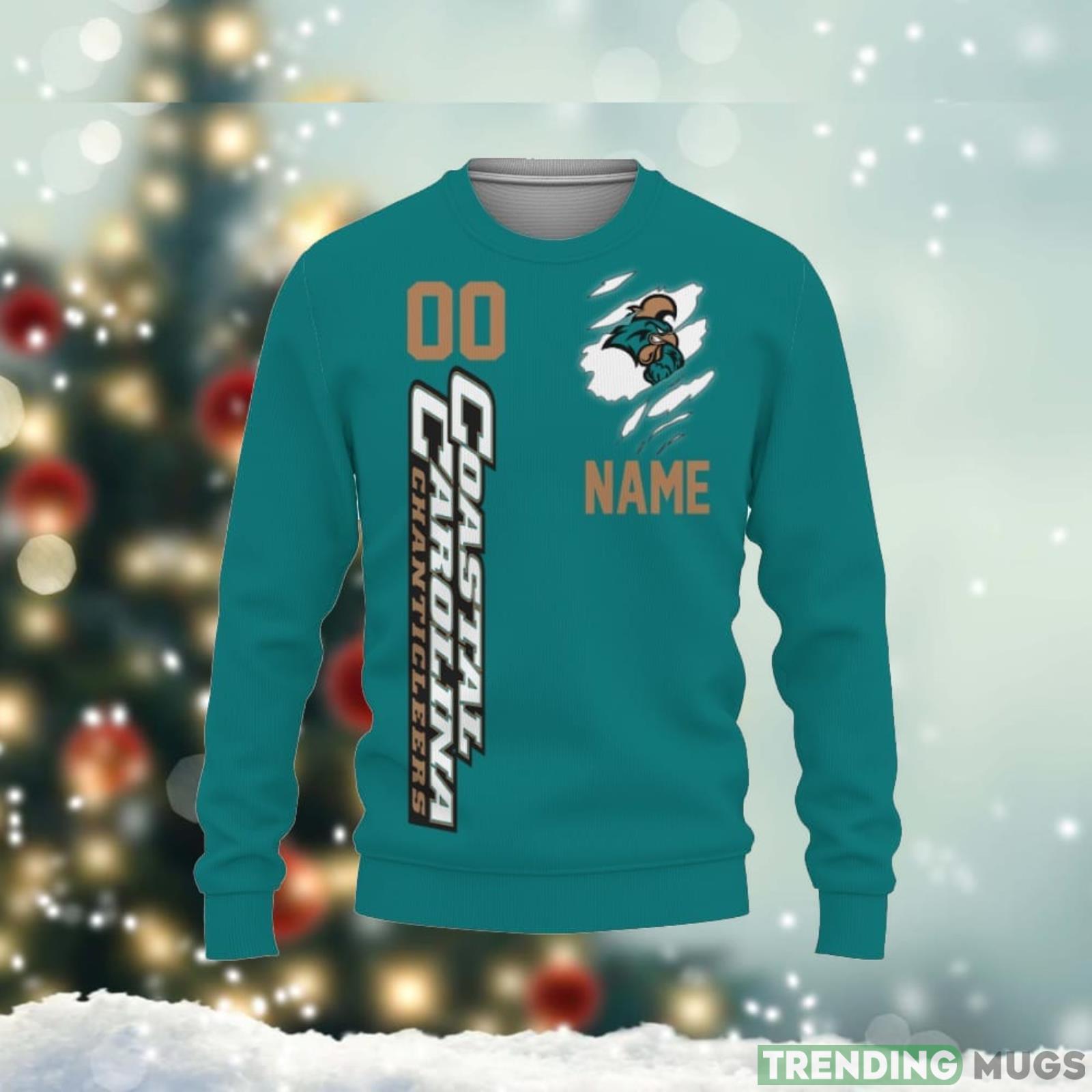Get ready to show off your team spirit with the Coastal Carolina Chanticleers Sports American Football Helmet Custom Name And Number 3D Sweater! This unique and eye-catching sweater is the perfect Christmas gift for any die-hard fan.