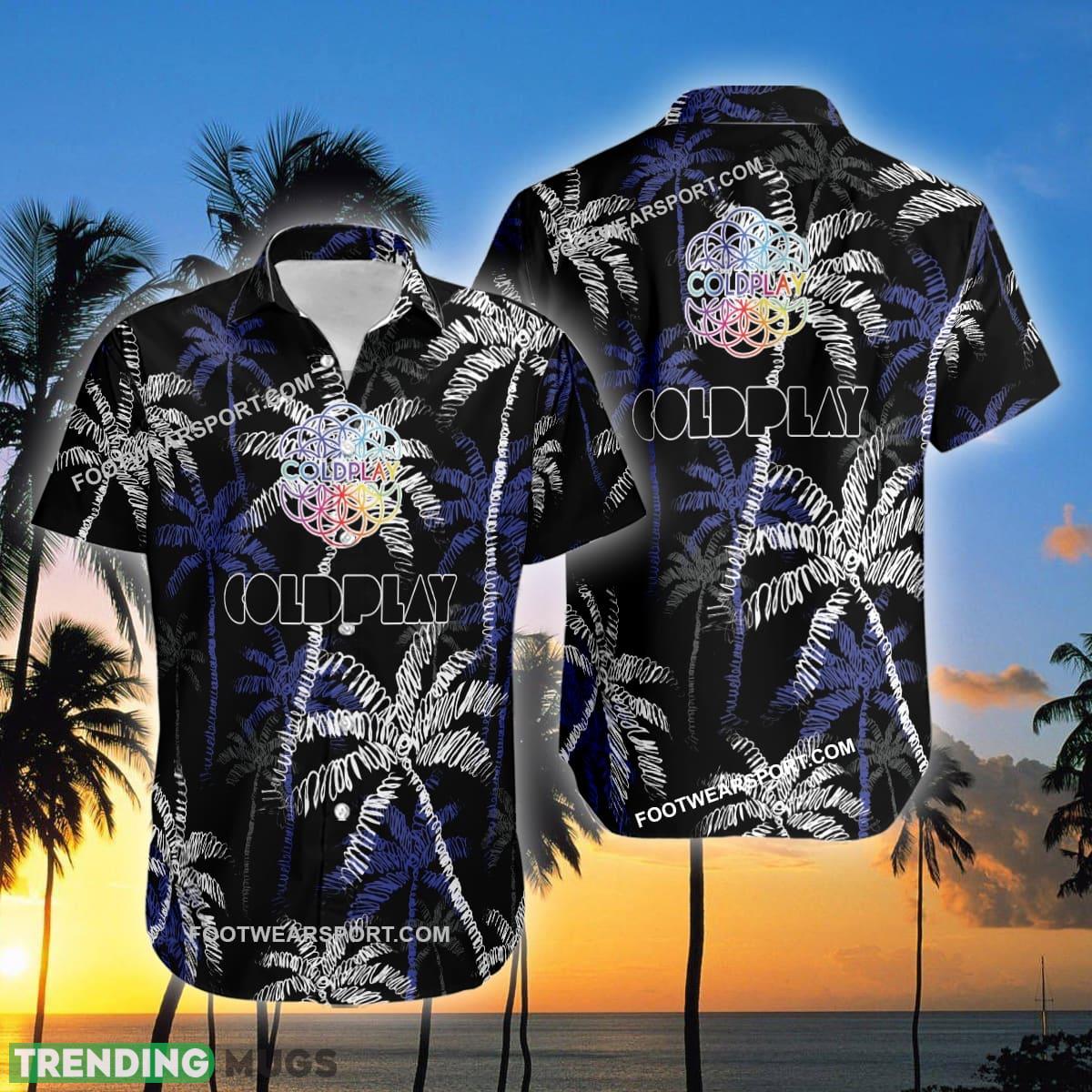 Coldplay Band Brand Coconut Tree Pattern Black AOP Hawaiian Shirt Gift For Fans Hawaiian Shirt