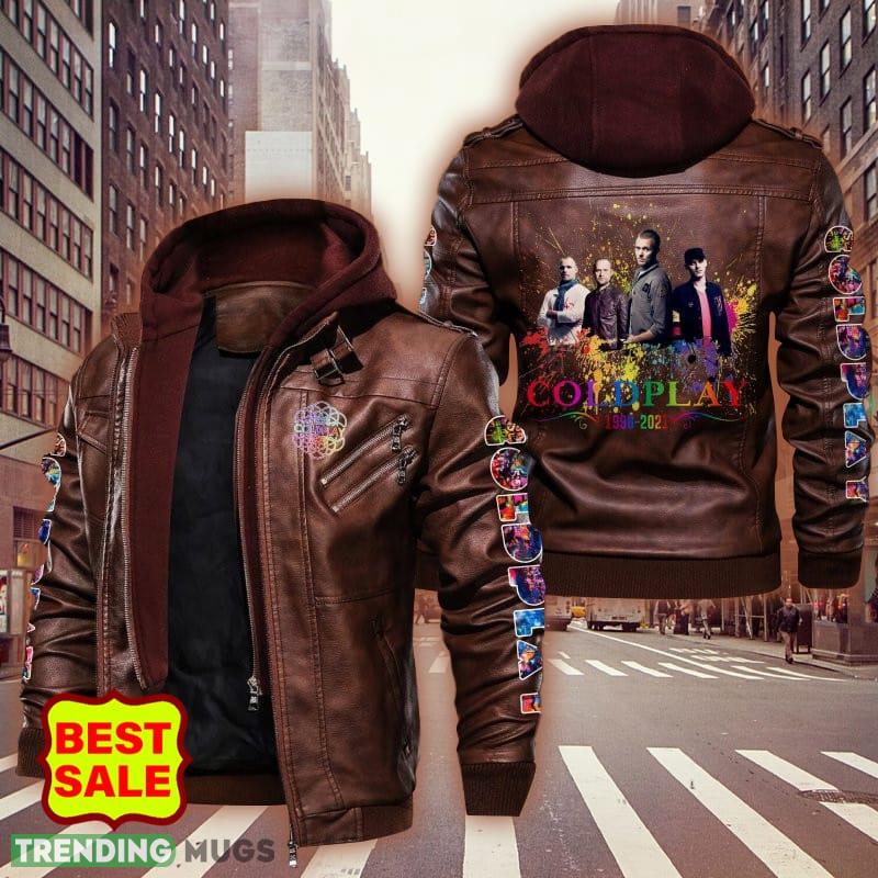Coldplay Logo 6 Brown And Black Leather Jacket For Men And Women 2D Leather Jacket
