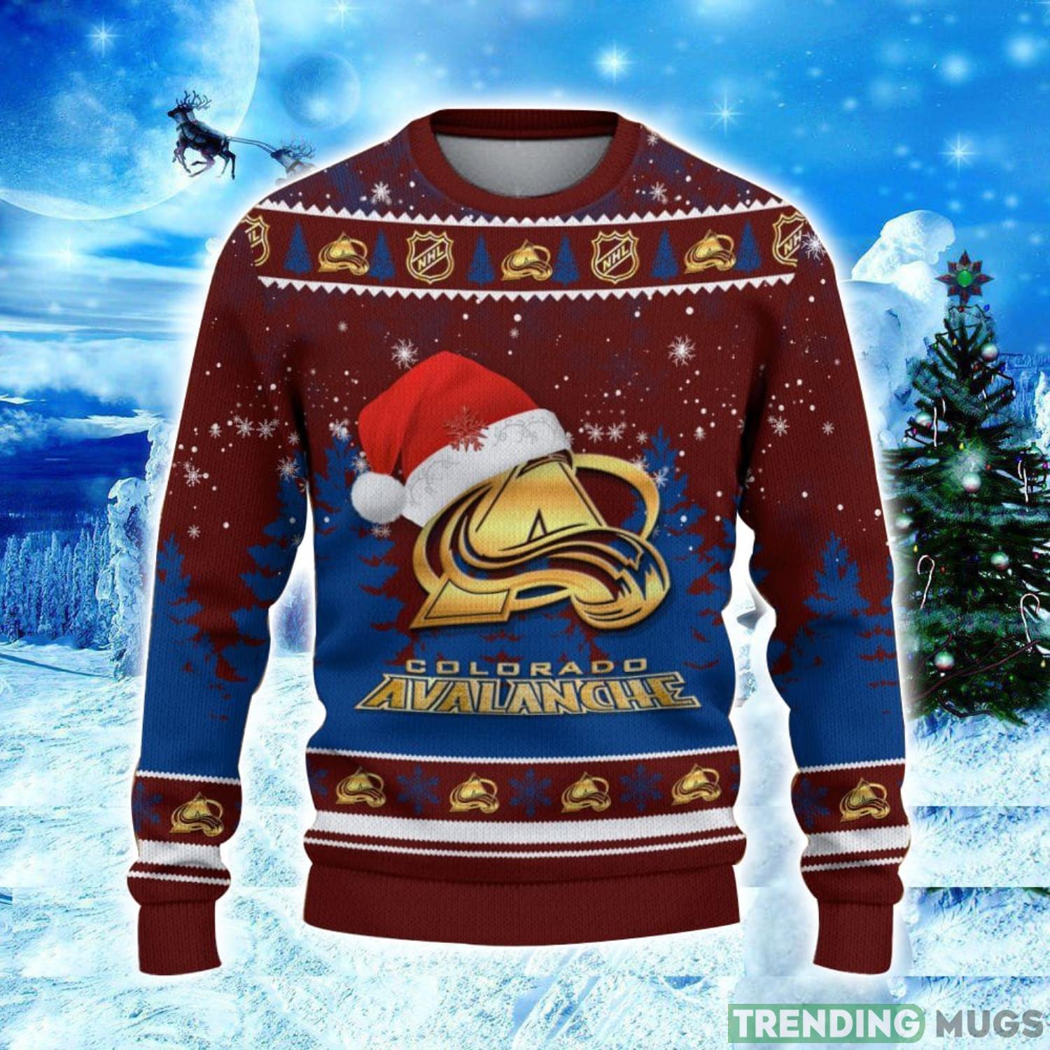 Colorado Avalanche Logo Wearing Santa Hat Christmas Gift Ugly Christmas Sweater Christmas Gift Ideas Informations:
