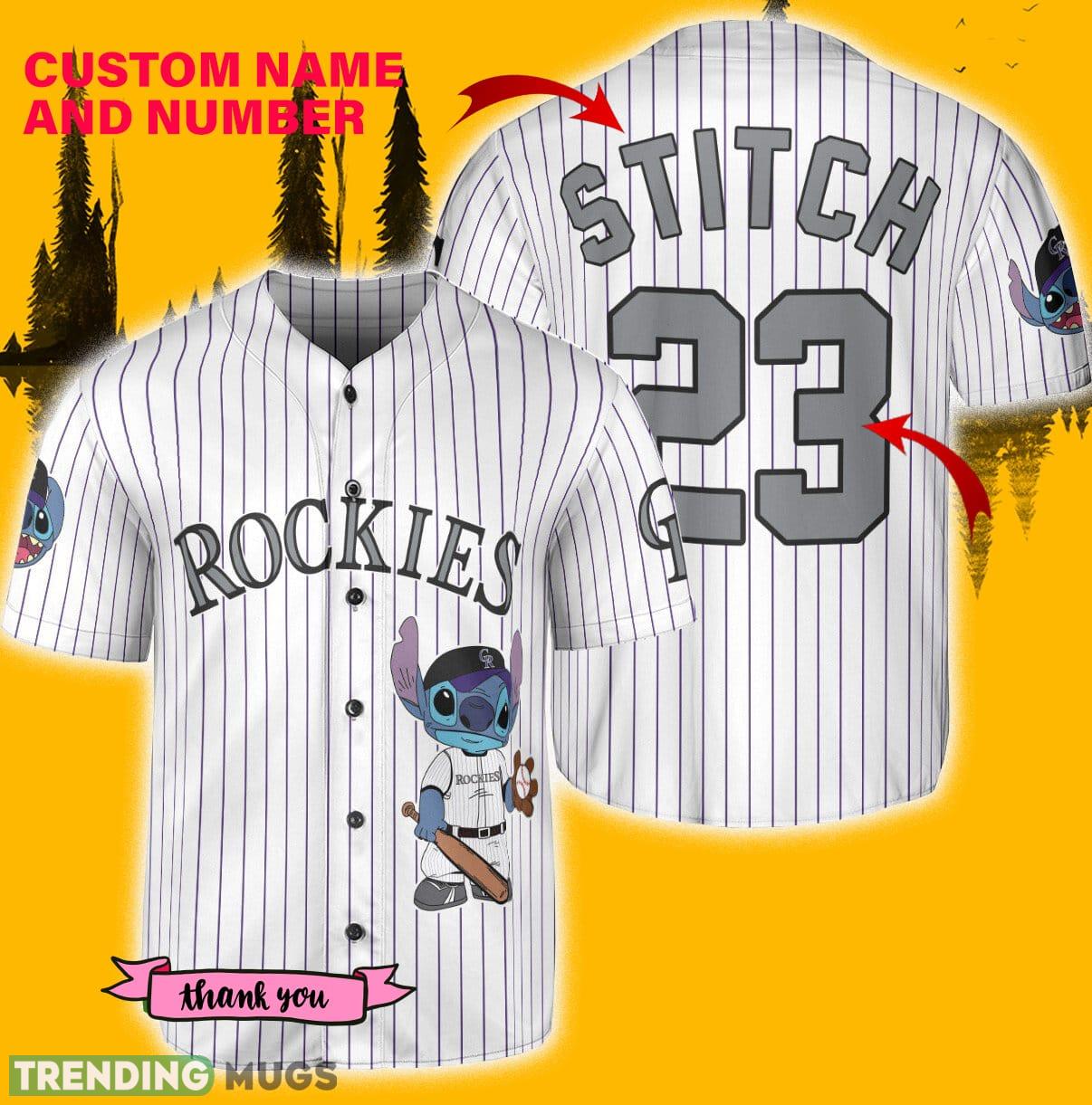 Don’t miss out on this incredible opportunity to showcase your love for the Colorado Rockies in a fun and fashionable way. Order your Colorado Rockies Lilo & Stitch Baseball Jersey Shirt White Custom Number And Name today and elevate your game-day experience to a whole new level!