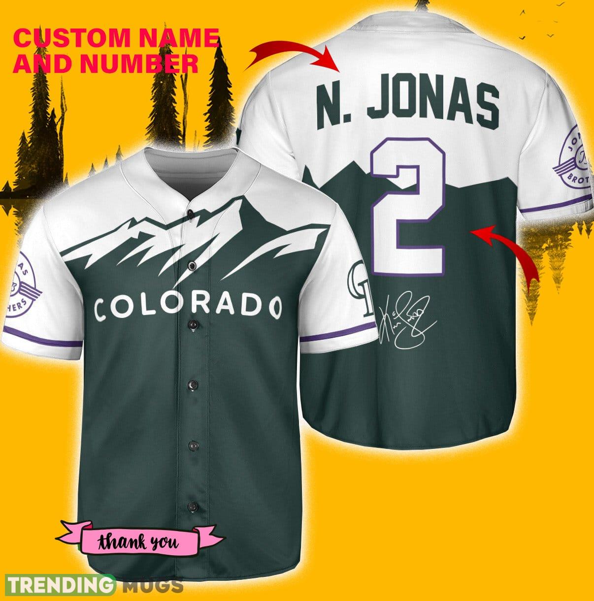Get ready to show off your Colorado Rockies pride with the N. Jonas Baseball Jersey Shirt! This stunning green shirt is the perfect way to represent your favorite team and player in style. With the option to add your custom number and name, you can make this jersey truly unique to you. Made with high-quality materials, this shirt is not only comfortable but also durable, ensuring it will last through all the exciting moments of the game. Whether you’re cheering from the stands or hitting the field yourself, this Colorado Rockies N. Jonas Baseball Jersey Shirt is a must-have for any fan. Grab yours today and join the ranks of the true Rockies enthusiasts!