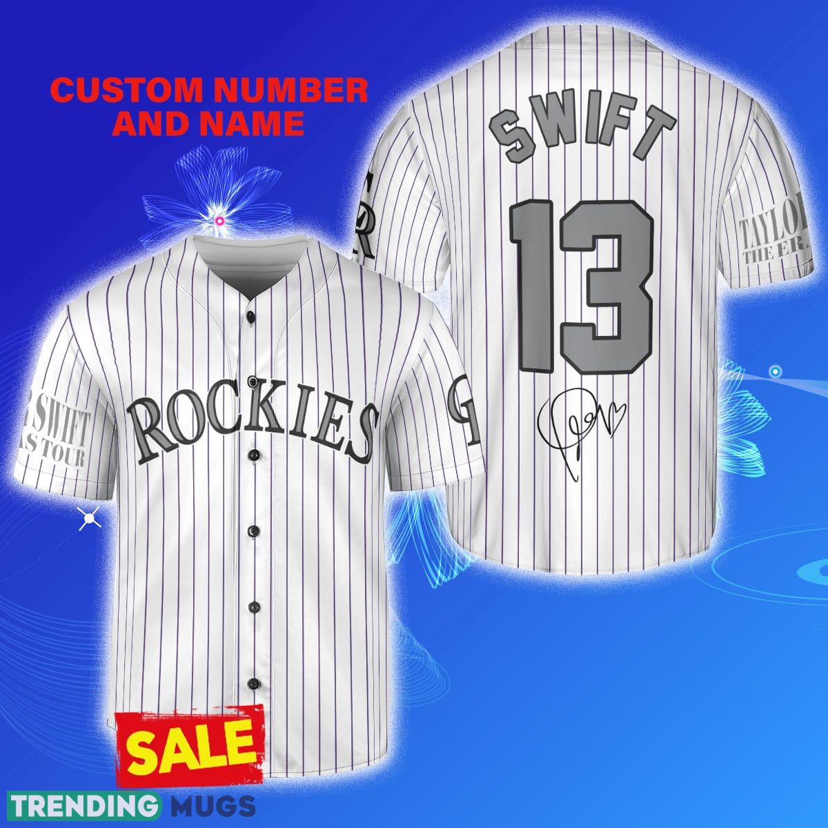 Don’t miss out on this limited edition collaboration between the Colorado Rockies and Taylor Swift. Order your Colorado Rockies Taylor Swift x Colorado Rockies Custom Number And Name Baseball Jersey Shirt today and let your passion shine through in style.