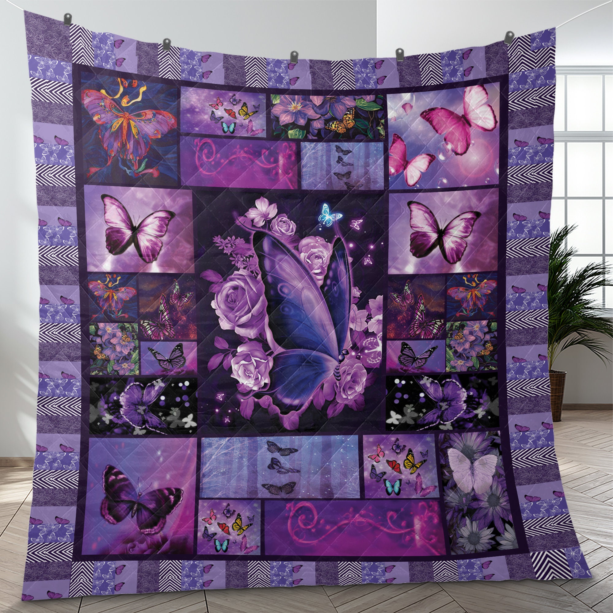 Information Colorful Butterflies Quilt Bedding Set Purple Butterfly Quilt Blanket Christmas Gifts Christmas Home decor Butterfly lover: