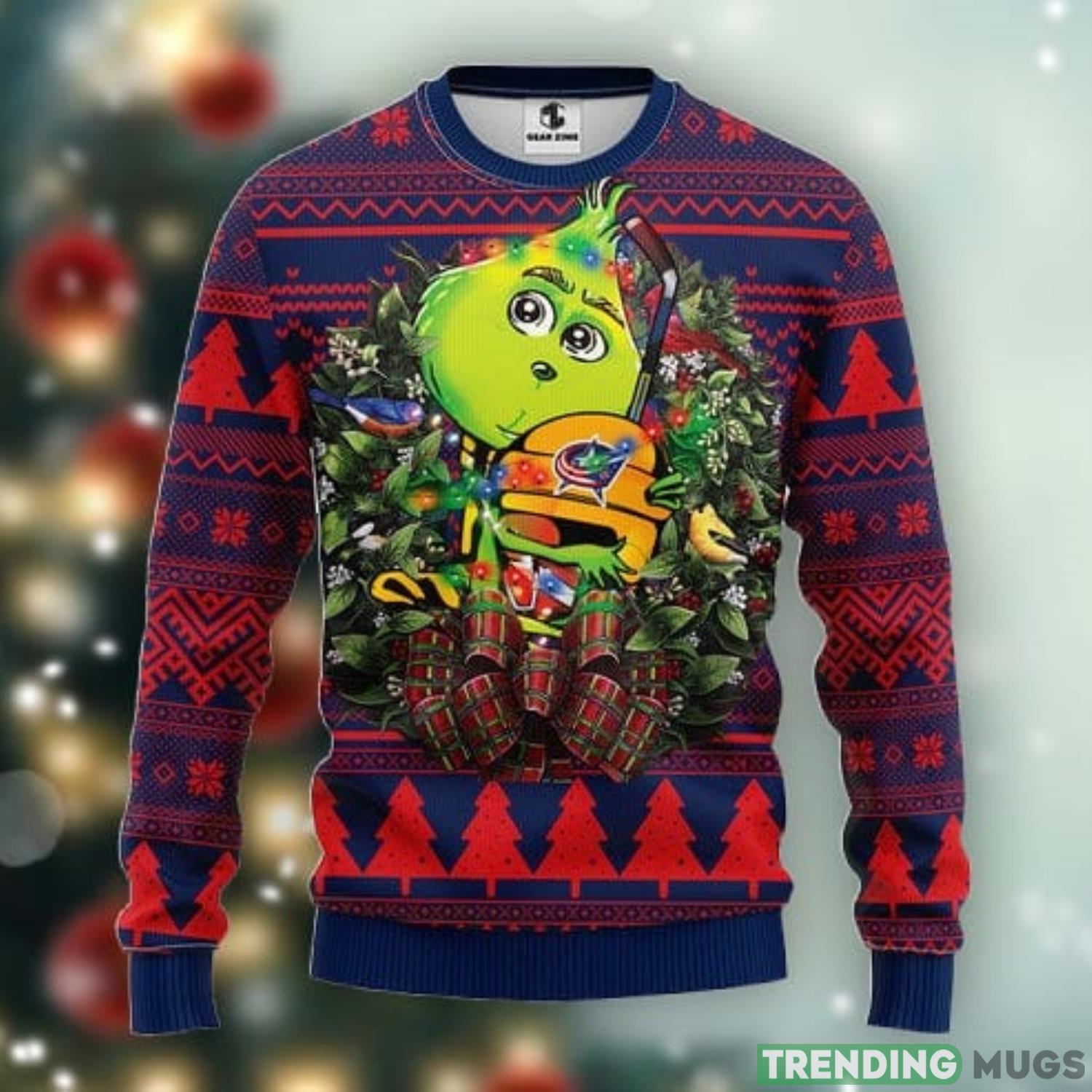 Columbus Blue Jackets Grinch Hug Christmas Ugly Sweater 3D Christmas Xmas Sweater Product Photo 1