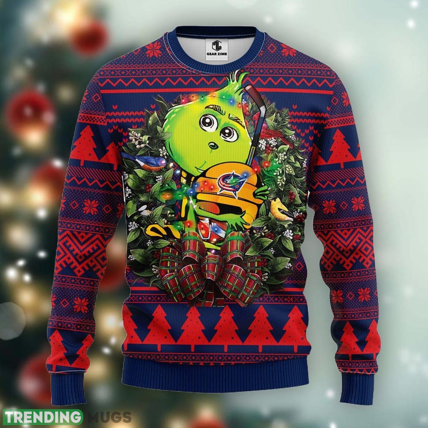 Columbus Blue Jackets Grinch Hug Xmas Ugly Christmas Sweater Best Christmas Gift Ideas Product Photo 1