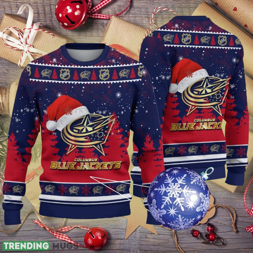Columbus Blue Jackets Logo Golden Fans Santa Hat Tree Ugly Christmas Sweater Informations: