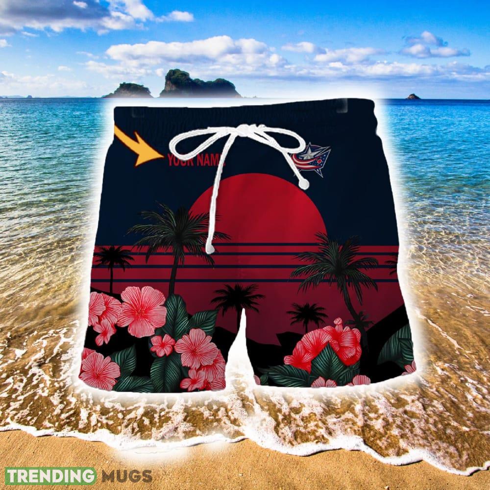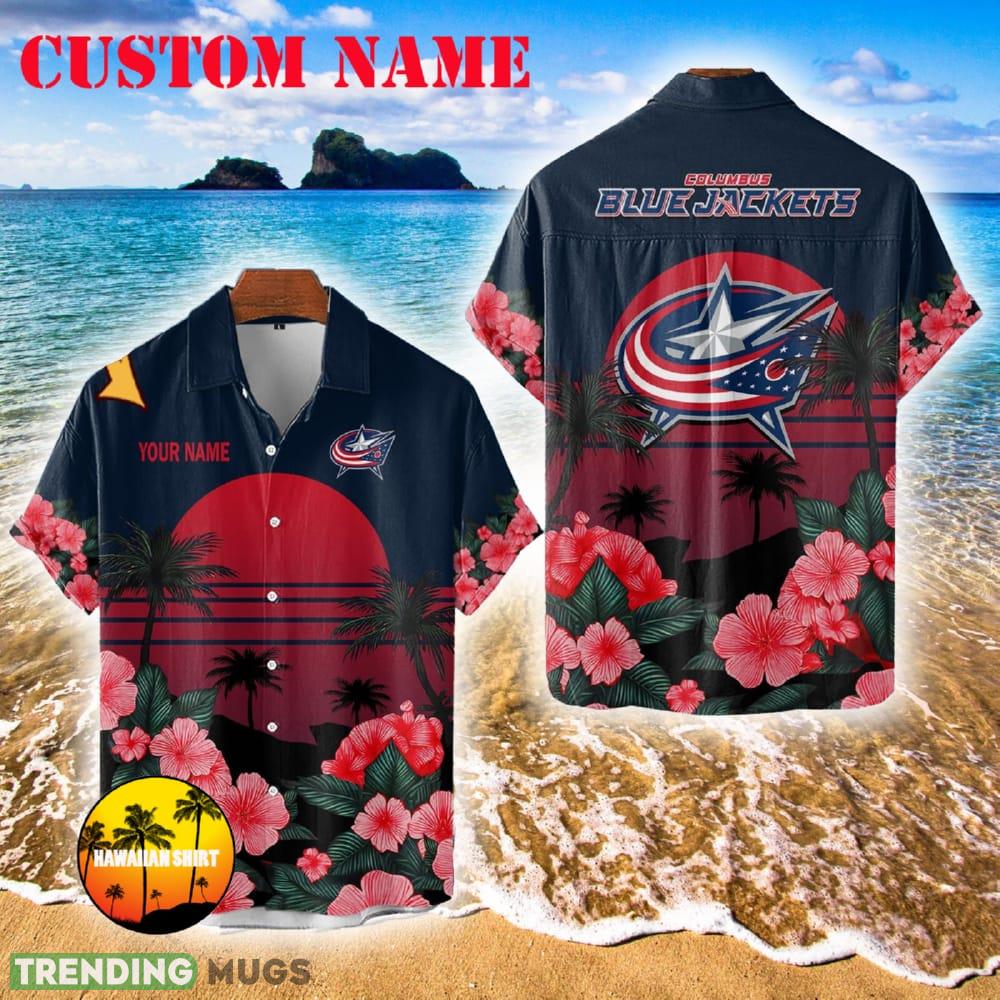 Columbus Blue Jackets Plus Size AOP Hawaiian Shirt And Short Custom Name For Summer Details: