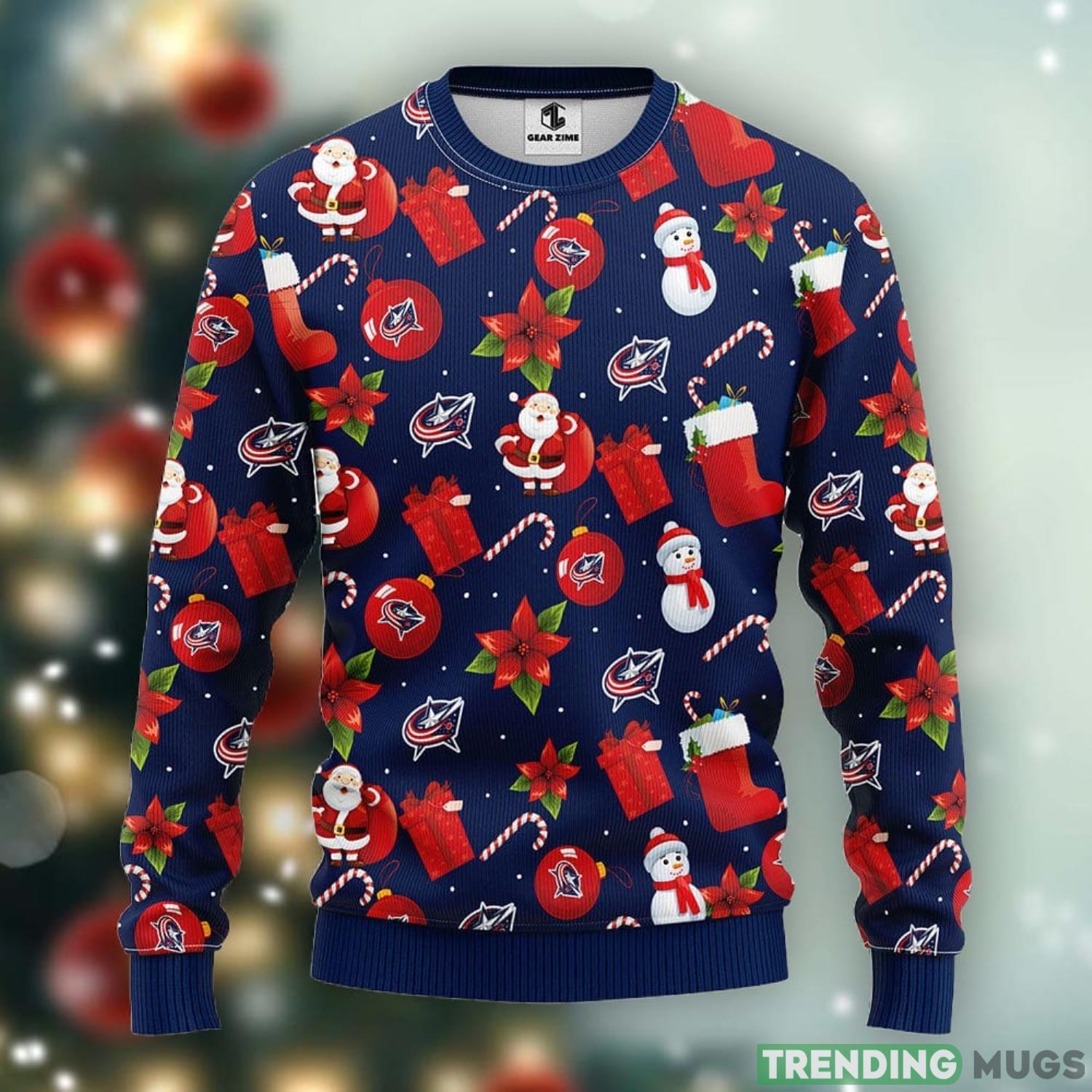 Columbus Blue Jackets Santa Claus Snowman Christmas Ugly Sweater 3D Christmas Xmas Sweater Product Photo 1