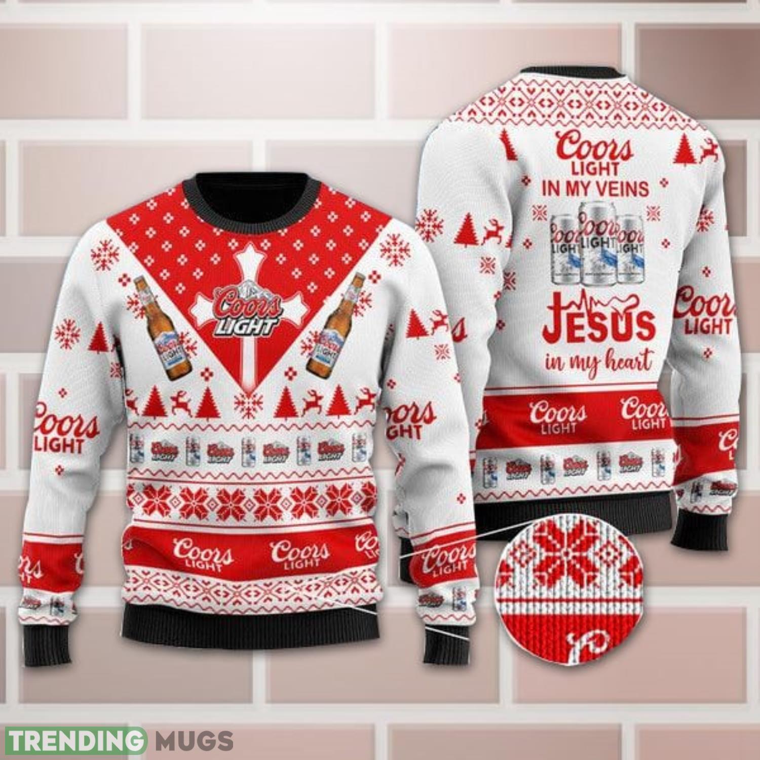 Get into the festive spirit with our Coors Light In My Veins Jesus In My Heart Ugly Christmas Sweater! This all-over print sweater is the perfect Christmas gift for anyone who loves beer and wants to show off their faith. Made with high-quality materials, this sweater is both comfortable and durable, ensuring it will last you for many holiday seasons to come. The unique design features a fun and eye-catching pattern that showcases your love for Coors Light and Jesus. Whether you’re attending an ugly sweater party or simply want to spread some holiday cheer, this sweater is sure to be a conversation starter. So, why wait? Grab your Coors Light In My Veins Jesus In My Heart Ugly Christmas Sweater now and make a bold statement this holiday season!