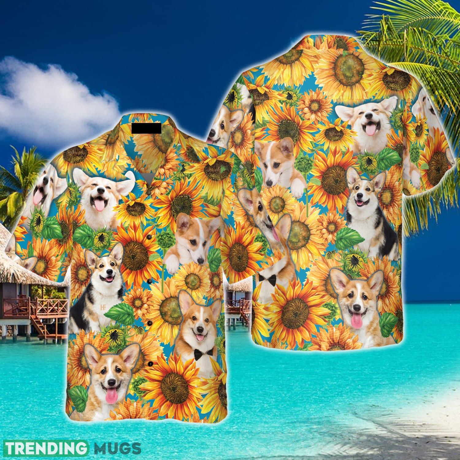 Corgi Lovers With Sunflower 3D Hawaiian Shirt Beach Summer For Men And Women Gift – Corgi Lovers With Sunflower Hawaiian Shirt_1