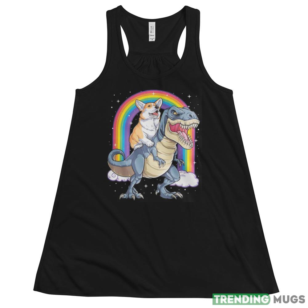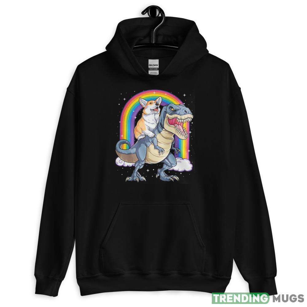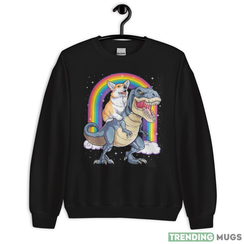 Corgi Riding A Dinosaur Rainbow Sweatshirt Dark Shirt