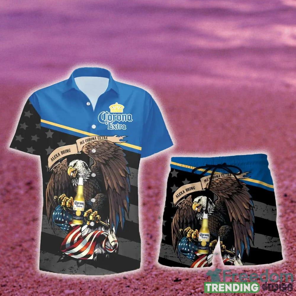 Corona Extra Beer Eagle American Flag Gift Hawaiian Set Shirt And Short Summer Beach – Corona Extra Beer Eagle American Flag Hawaiian Shirt And Short_1