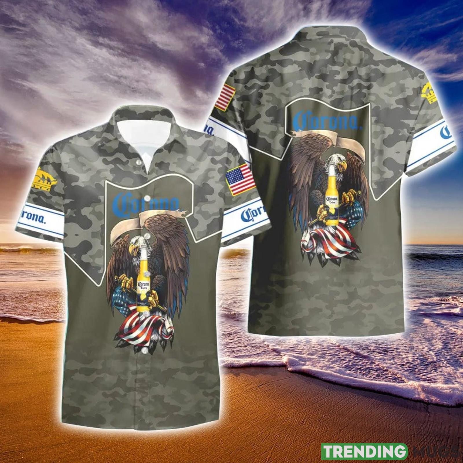 Corona Extra Beer Green Camo Eagle Usa Flag Hawaiian Shirt And Shorts Best Gift For Summer Holiday Details: