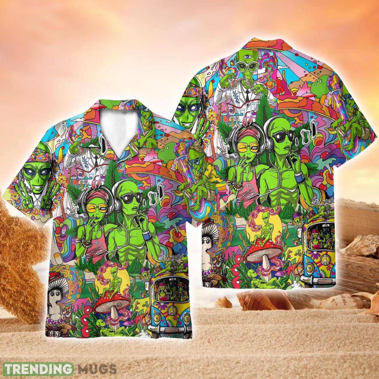 Couple Alien Smoking Weed Hippie 3D Hawaiian Shirt Holiday Gift Details: