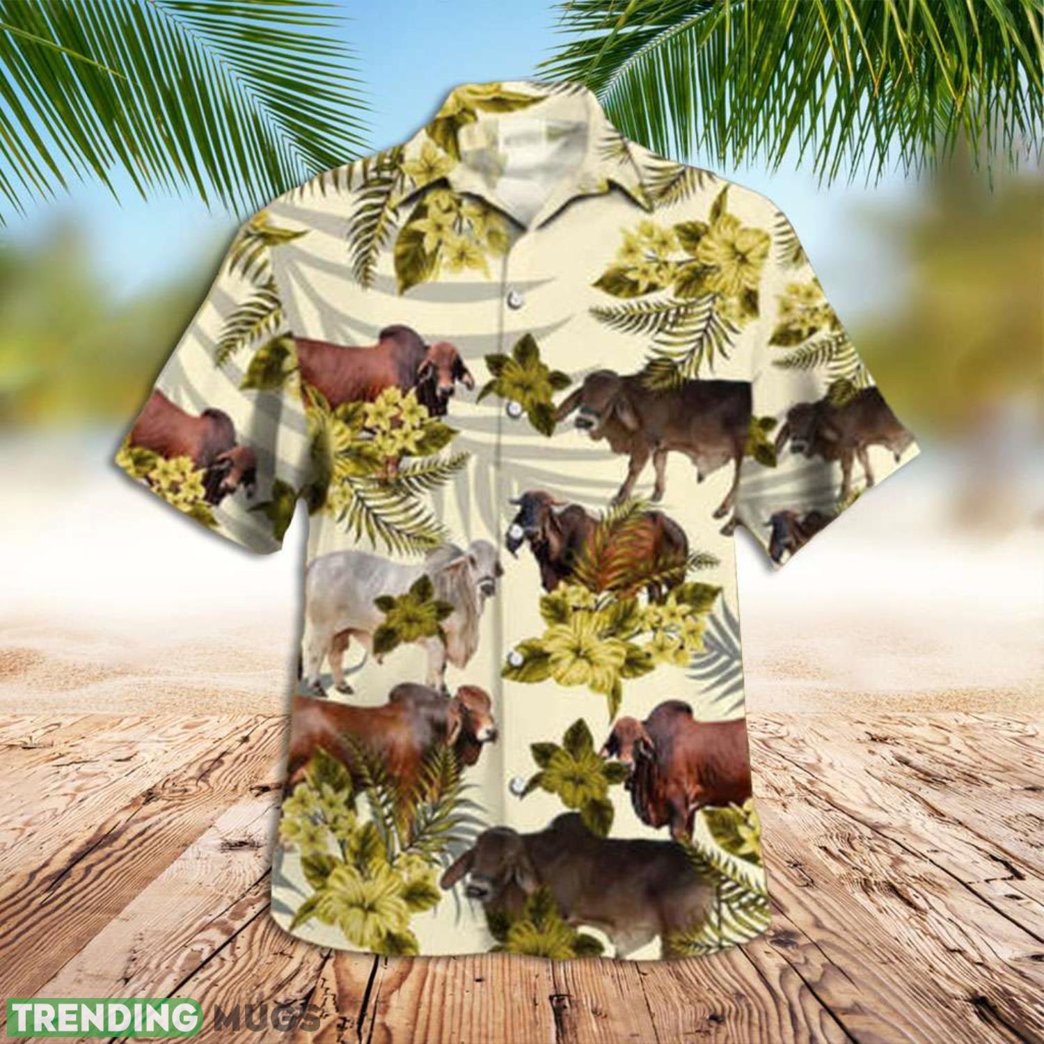 Cow Beach Shirt Brahman Hibiscus Flower Hawaiian Shirt Details: