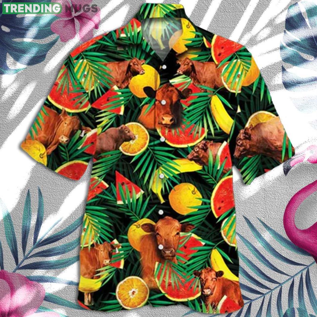 Cow Cute Summer Gift Red Angus Cattle Lovers Tropical Fruits Hawaiian Shirt Details: