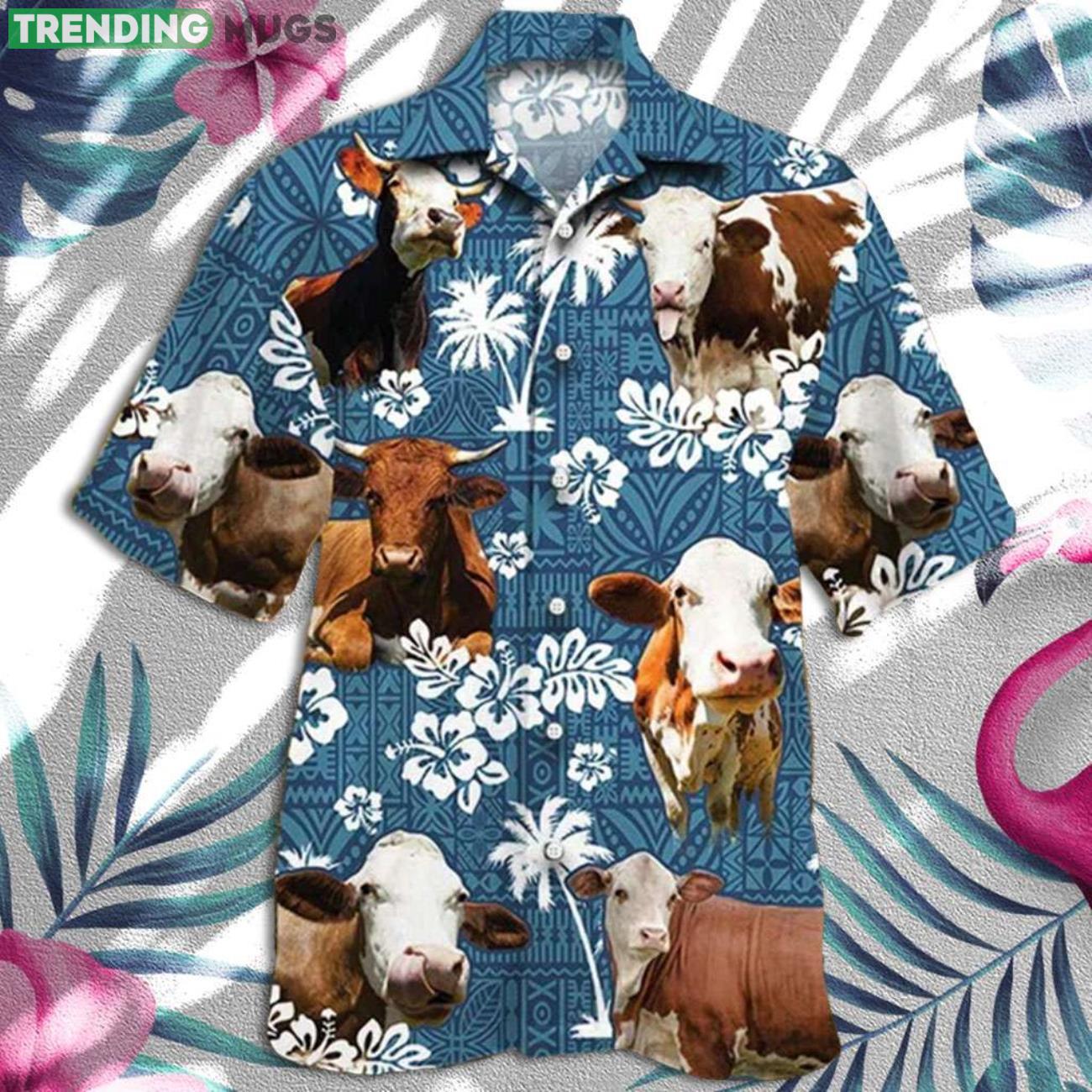 Cow Cute Summer Gift Simmental Cattle Lovers Blue Tribal Hawaiian Shirt Details: