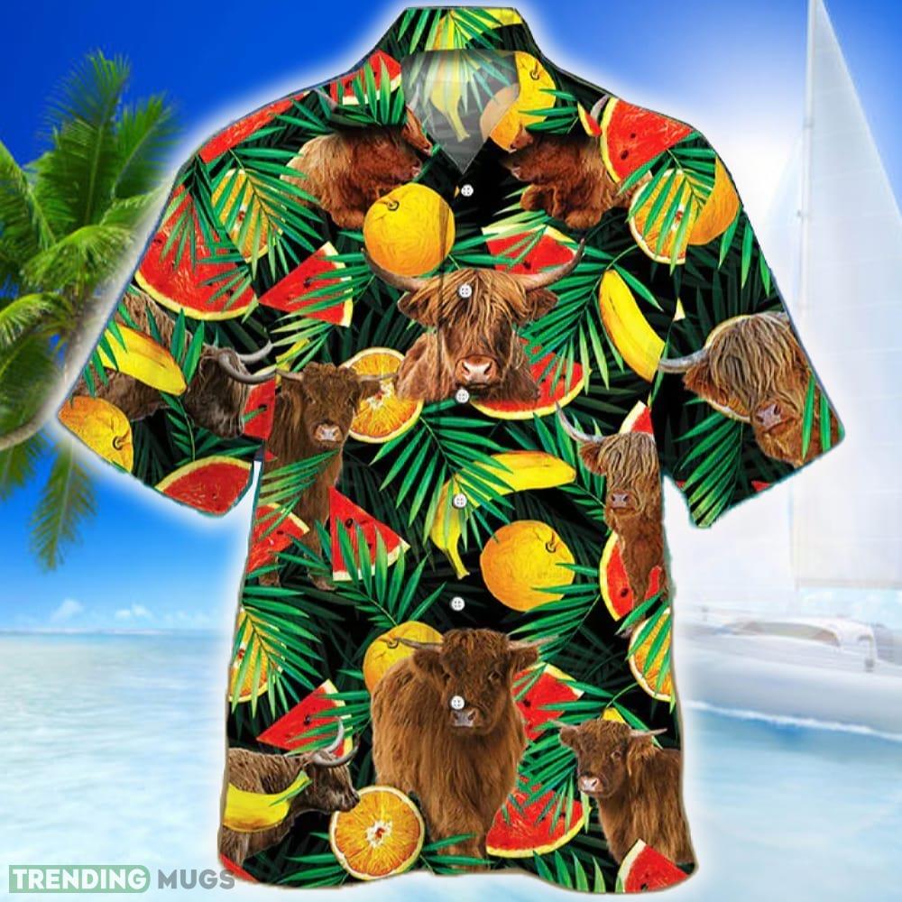 Cow Highland Cattle Tropical Fruits Hawaiian Shirt Aloha Shirt For Cow Lover Beach – Cow Highland Cattle Tropical Fruits Hawaiian Shirt Aloha Shirt For Cow Lover