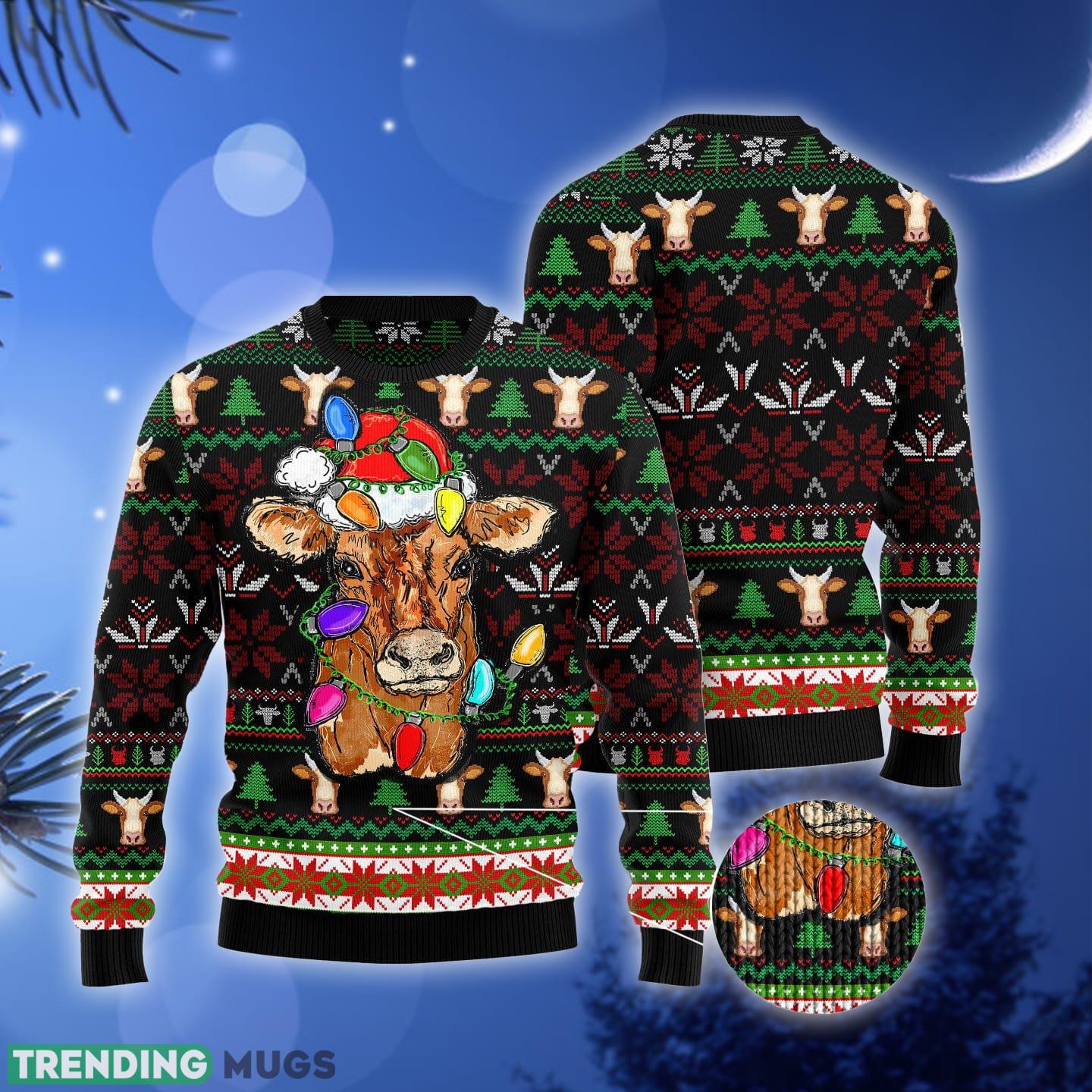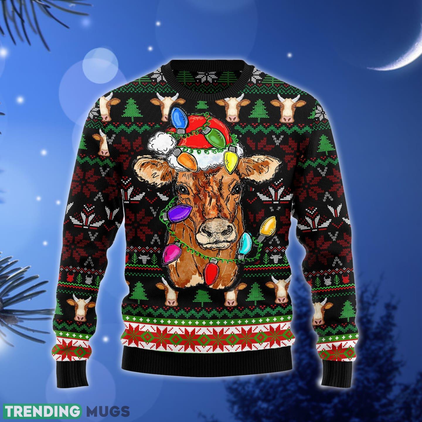 Cow with Santa hat and lights Ugly Christmas Sweater Gift Men Women Informations: