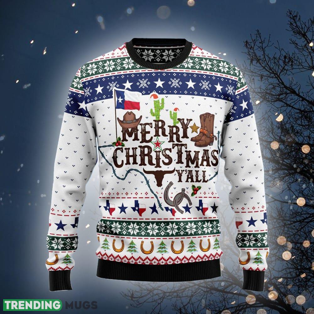 Cowboy Pattern Merry Xmas Y’all Ugly Christmas Sweater Gift For Men Women Informations:
