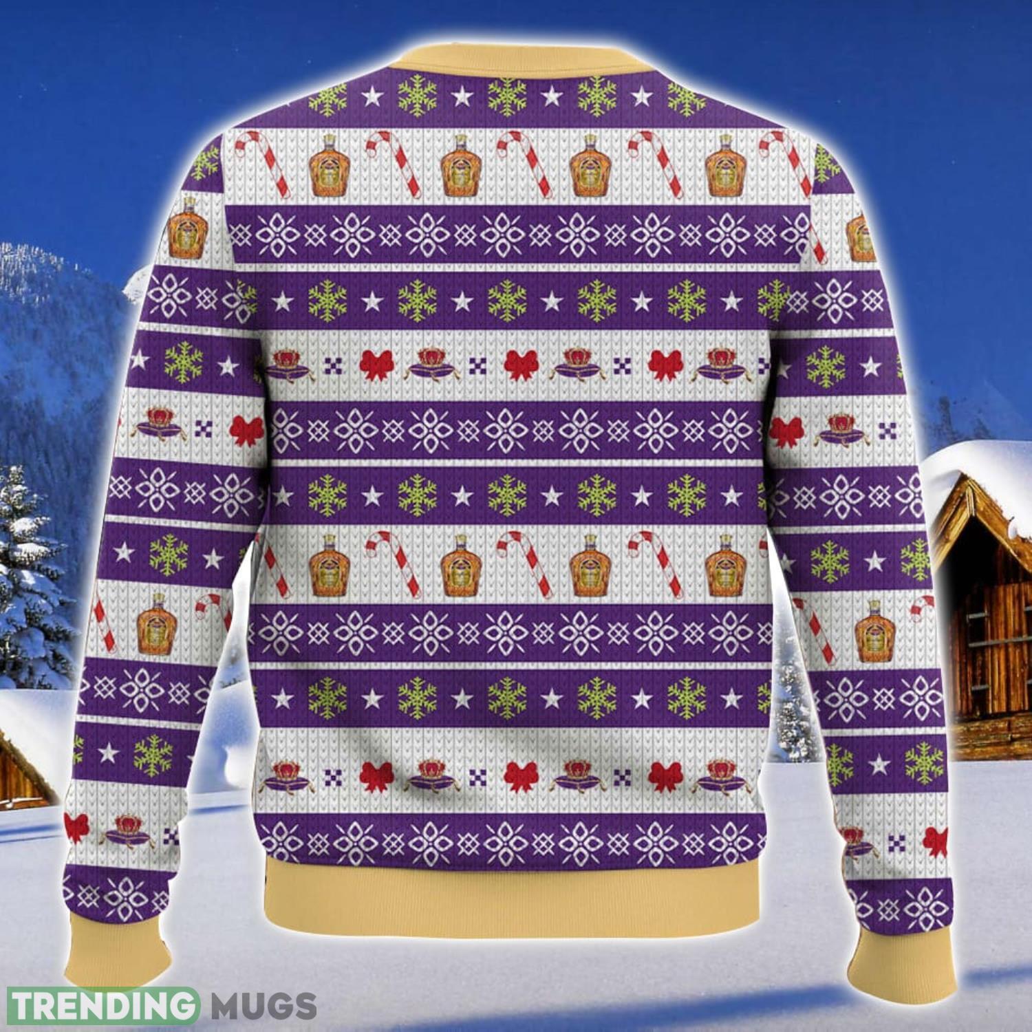 Featuring an all-over print of the mischievous Grinch and the iconic Crown Royal logo, this sweater is a playful and eye-catching way to show off your love for both the holiday season and your favorite whiskey brand.