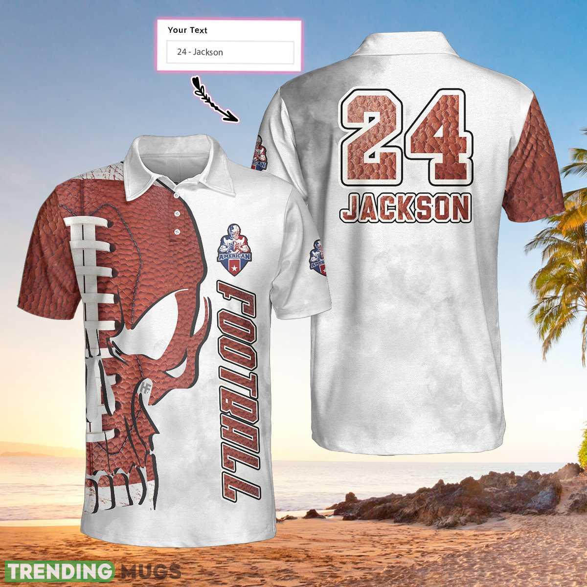 Whether you’re heading to a game, a casual hangout with friends, or want to make a statement during everyday activities, our Custom Name American Football And Skull Short Sleeve Polo Shirt is the perfect choice. It’s not just a shirt, it’s a statement piece that showcases your love for football and your individuality.