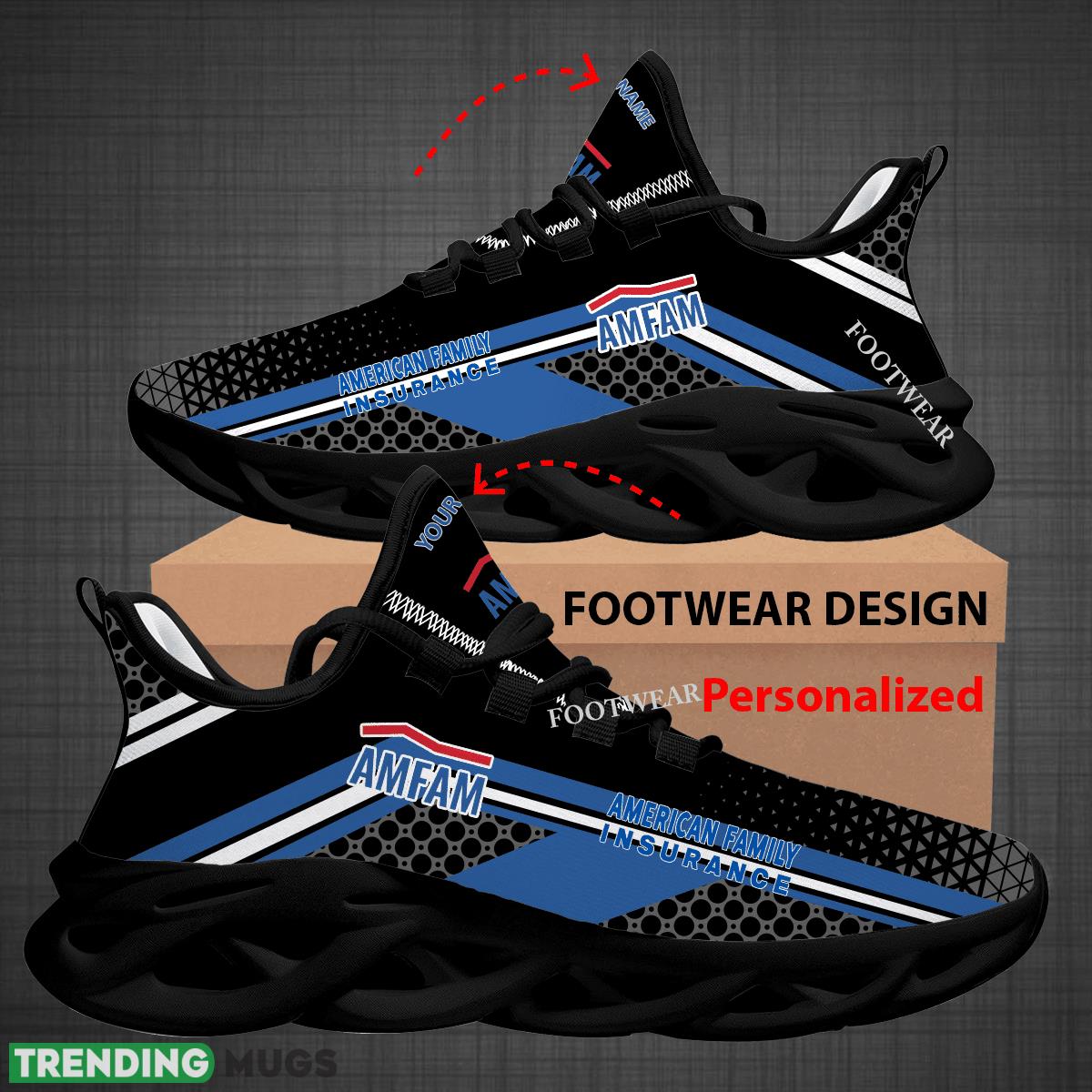 This Custom Name Amfam Logo Max Soul Shoes For Big Fans Runing Sneakers Gift is a breathable, lightweight, and comfortable casual outdoor shoe that has a unique design. It is made of a mesh fabric which makes it sweat absorbent and breathable, while the rubber bottom ensures traction, comfort, and durability. It is available in two colors: black or white sole. There are two styles of shoelace holes so you can choose your preference.