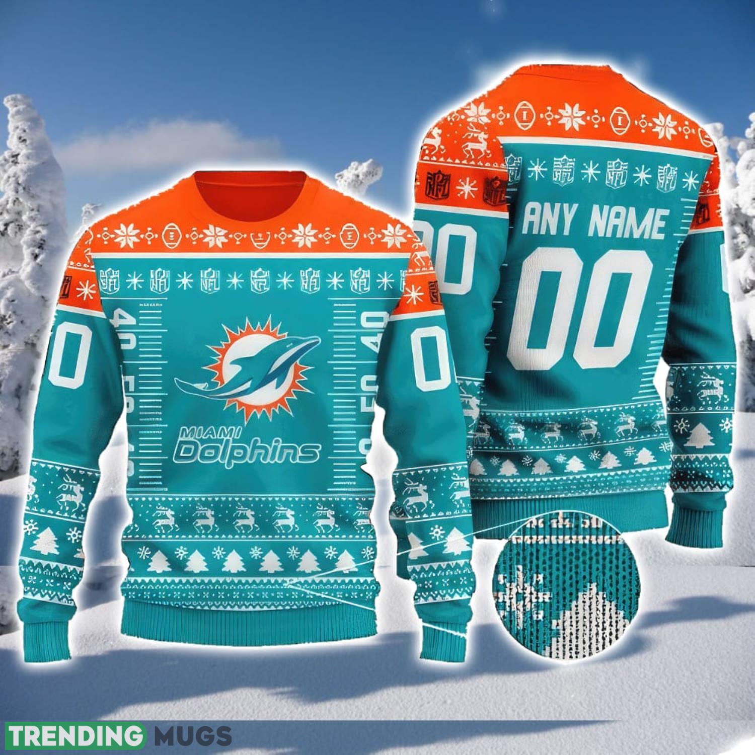 So why wait? Get your hands on our Custom Name And Number NFL Miami Dolphins Team Ugly Christmas Sweater Christmas Gift and make this holiday season one to remember. Order now and let the festivities begin!