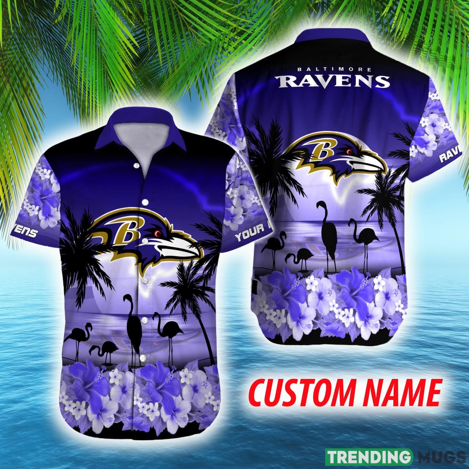 Custom Name Baltimore Ravens NFL Flamingo Hibiscus For Men And Women Gift Fans Hawaiian Shirt Details:
