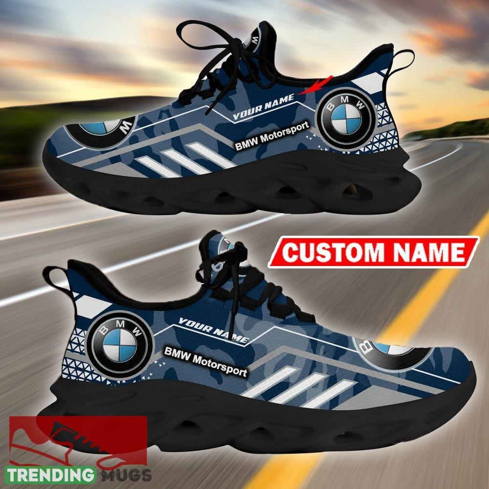 Custom Name BMW Logo Camo Navy Max Soul Sneakers Racing Car And Motorcycle Chunky Sneakers information: