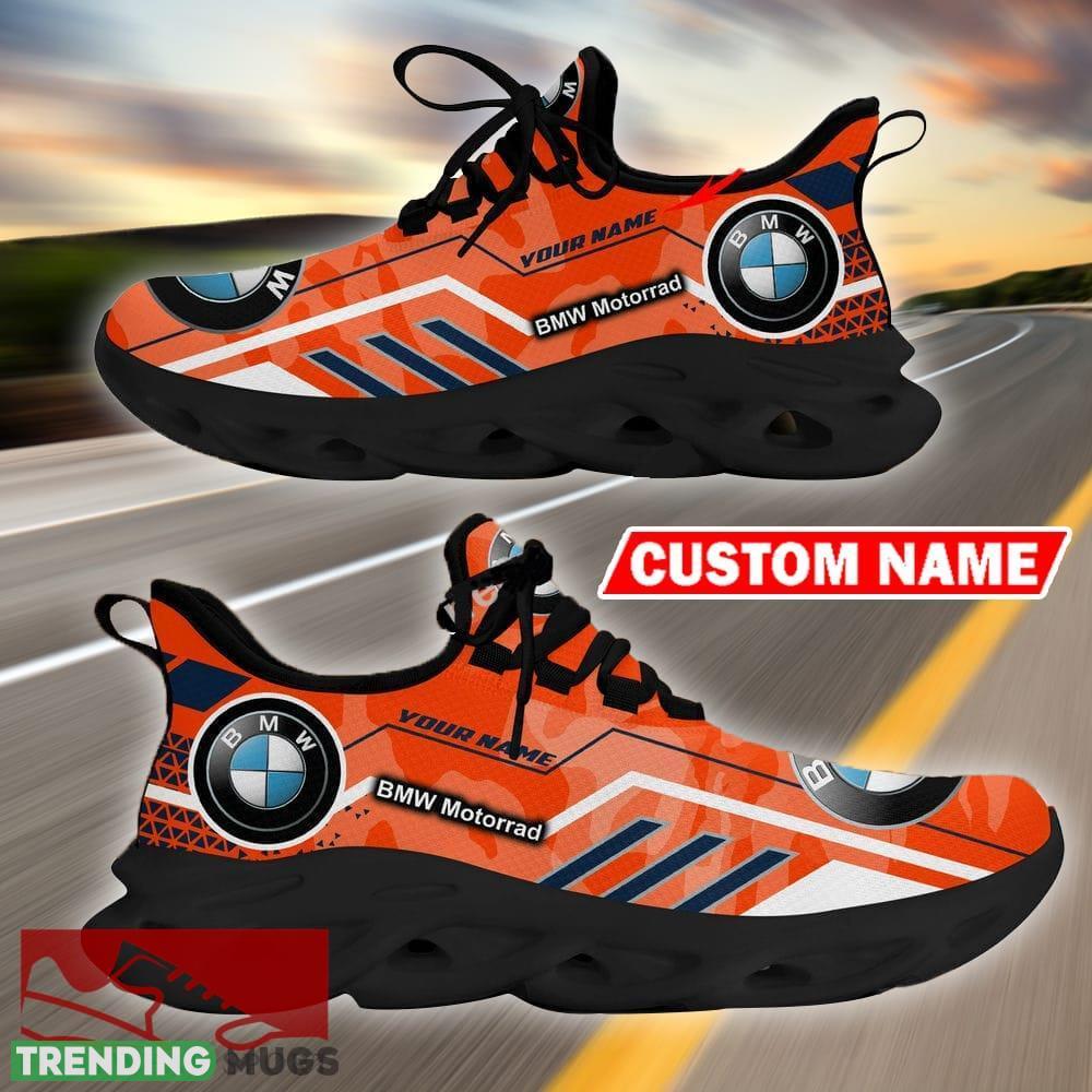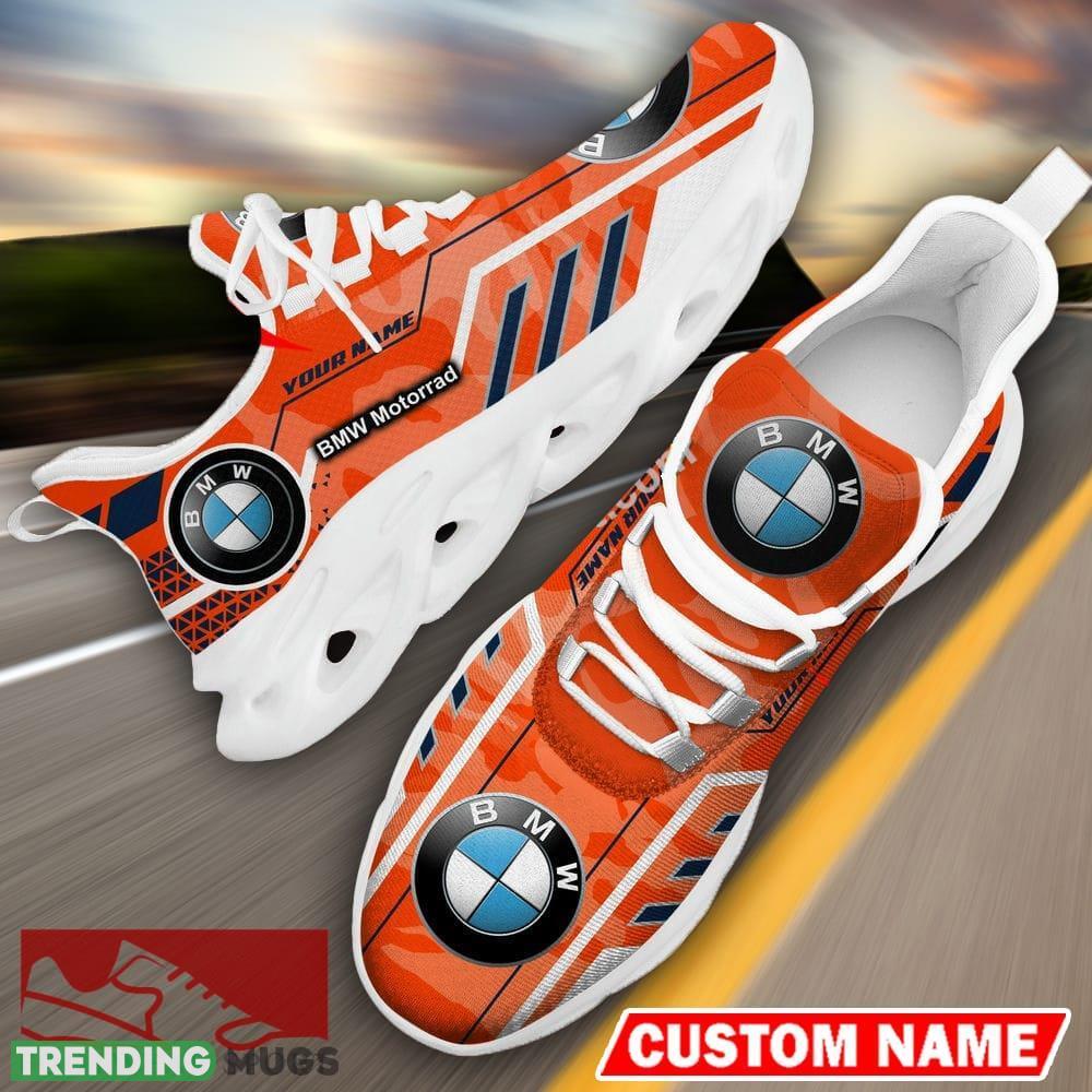 Custom Name BMW Motorrad Logo Camo Orange Max Soul Sneakers Racing Car And Motorcycle Chunky Sneakers Max Soul
