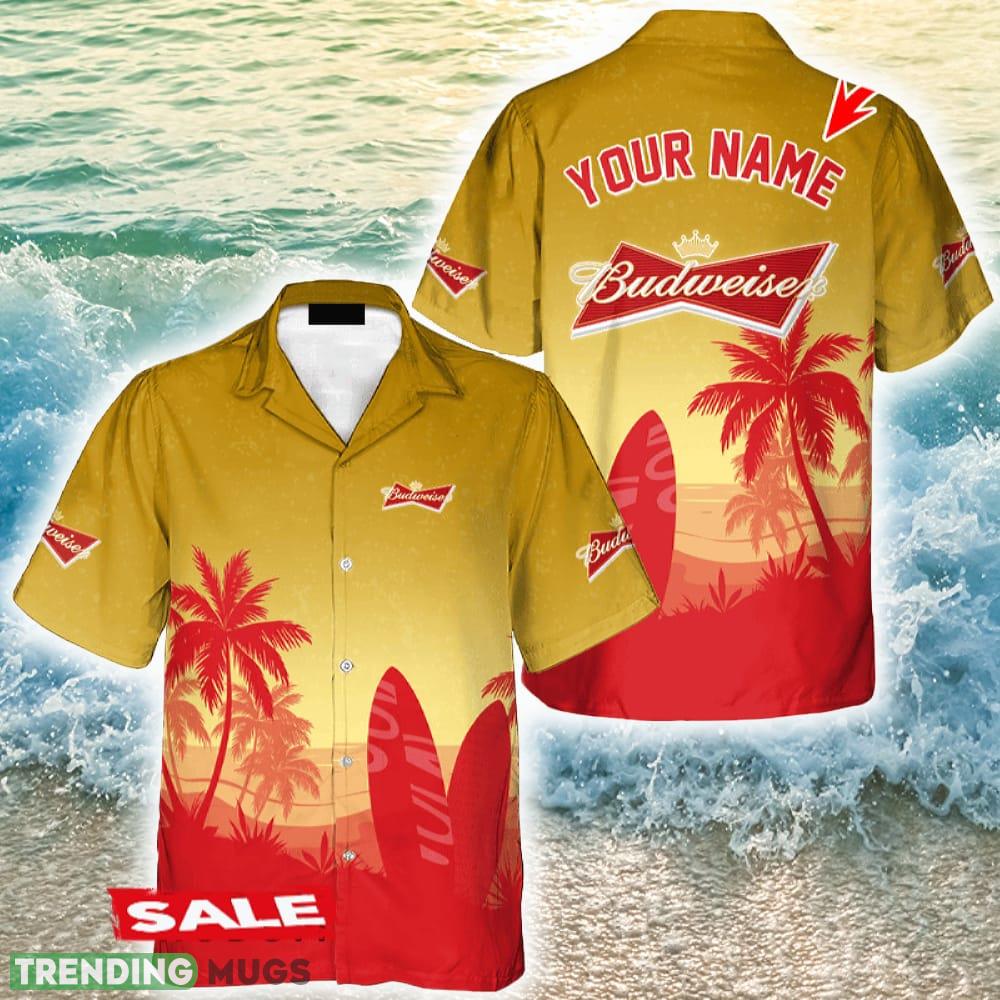 Custom Name Budweiser Beer Palm Tree Surfboard Hawaiian Shirt Beer Holidays Summer Details: