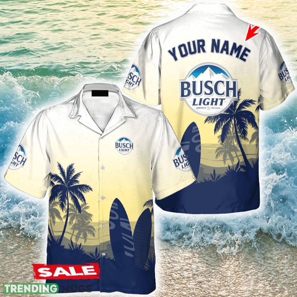 Custom Name Busch Light Palm Tree Surfboard Hawaiian Shirt Beer Holidays Summer Details: