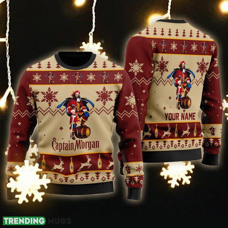 Custom Name Captain Morgan Knitwear Ugly Christmas Sweater – Personalized Captain Morgan Ugly Christmas Sweater Gift Men Women