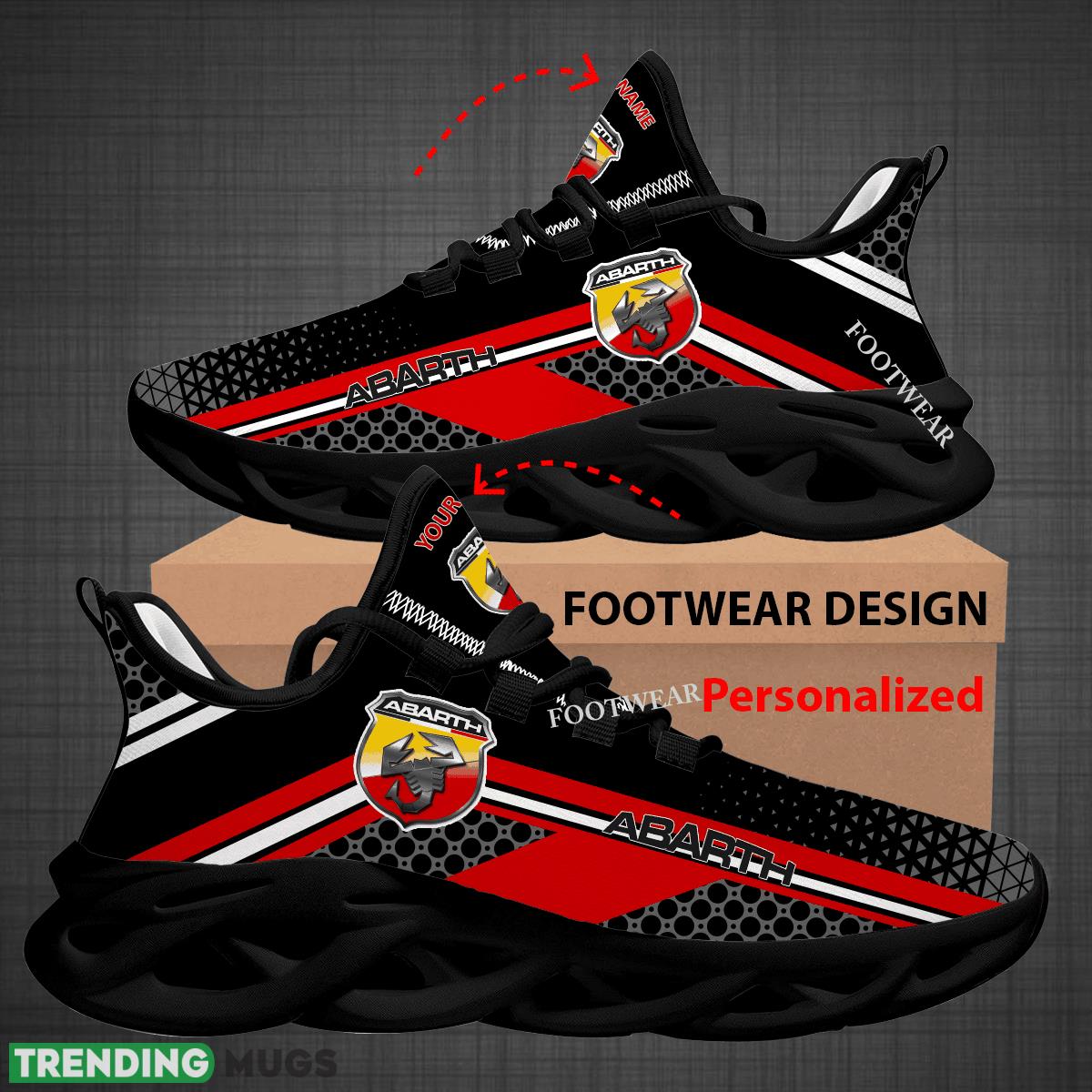 This Custom Name Car Racing Abarth Logo New Design Max Soul Shoes For Big Fans Runing Sneakers Gift is a breathable, lightweight, and comfortable casual outdoor shoe that has a unique design. It is made of a mesh fabric which makes it sweat absorbent and breathable, while the rubber bottom ensures traction, comfort, and durability. It is available in two colors: black or white sole. There are two styles of shoelace holes so you can choose your preference.