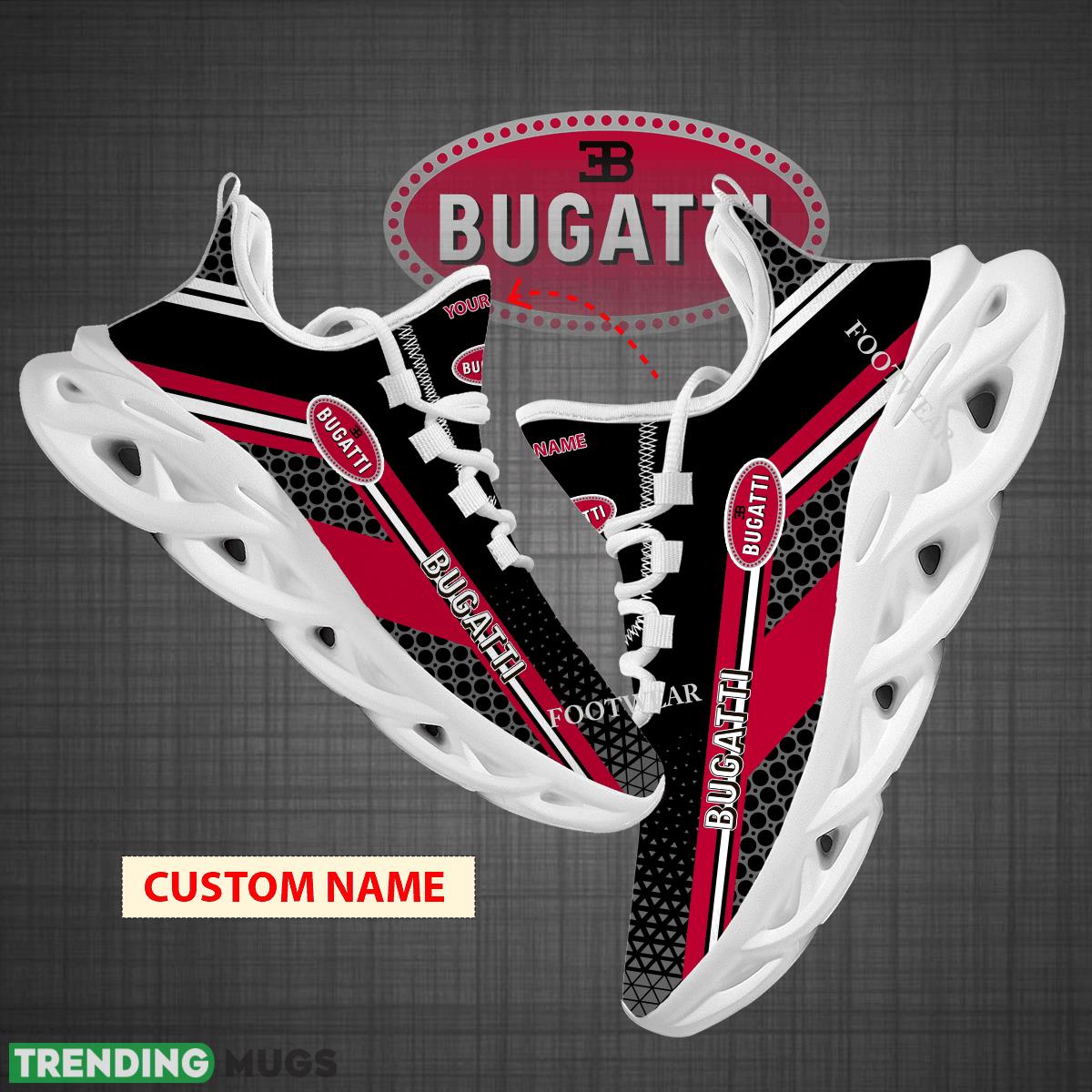 This Custom Name Car Racing Bugatti Logo New Design Max Soul Shoes For Big Fans Runing Sneakers Gift is a breathable, lightweight, and comfortable casual outdoor shoe that has a unique design. It is made of a mesh fabric which makes it sweat absorbent and breathable, while the rubber bottom ensures traction, comfort, and durability. It is available in two colors: black or white sole. There are two styles of shoelace holes so you can choose your preference.