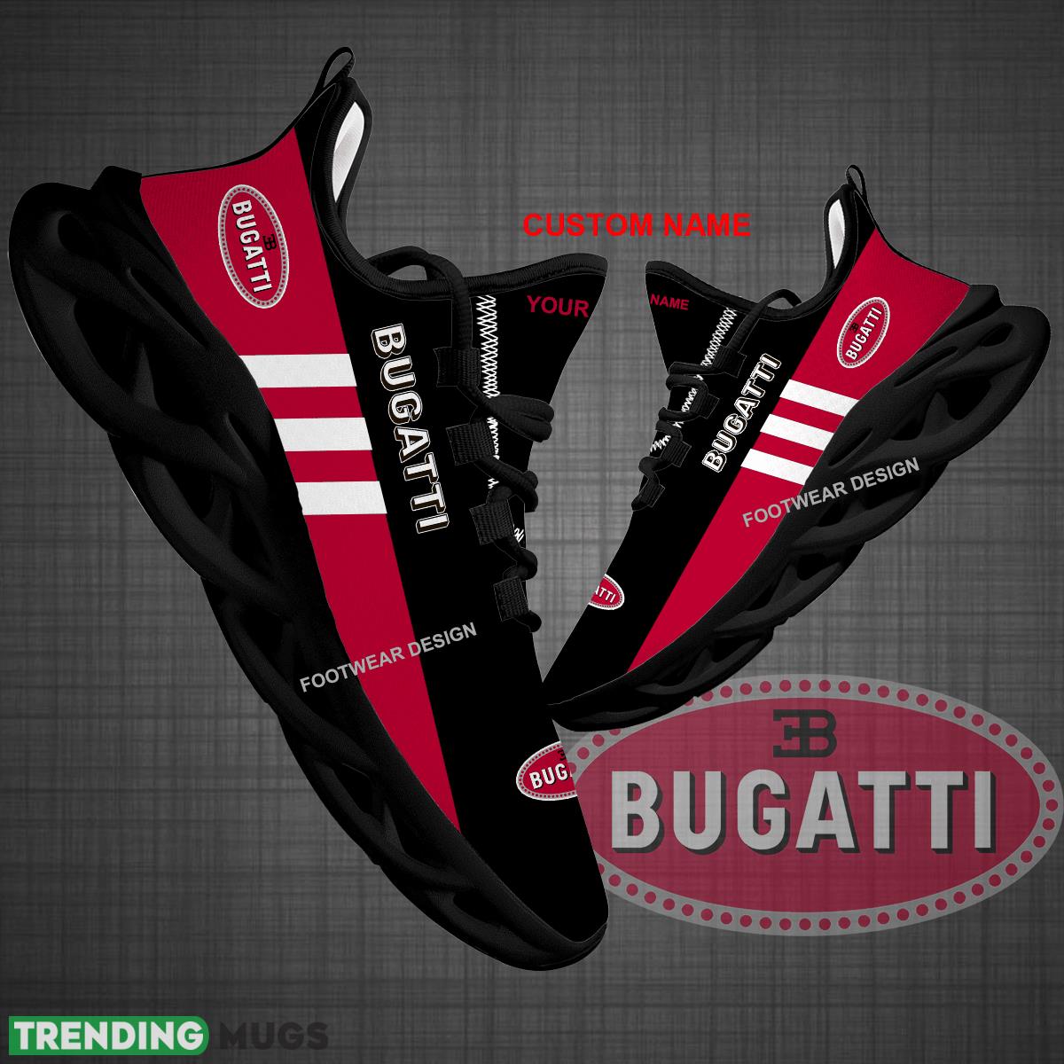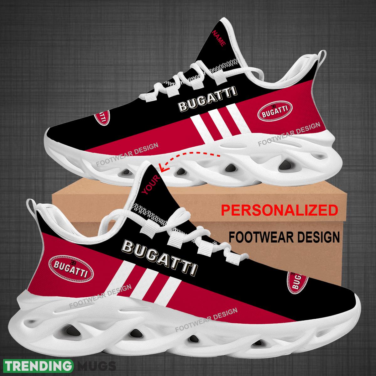Custom Name Car Racing Bugatti Logo New Style Max Soul Shoes For Big Fans Runing Sneakers Gift information: