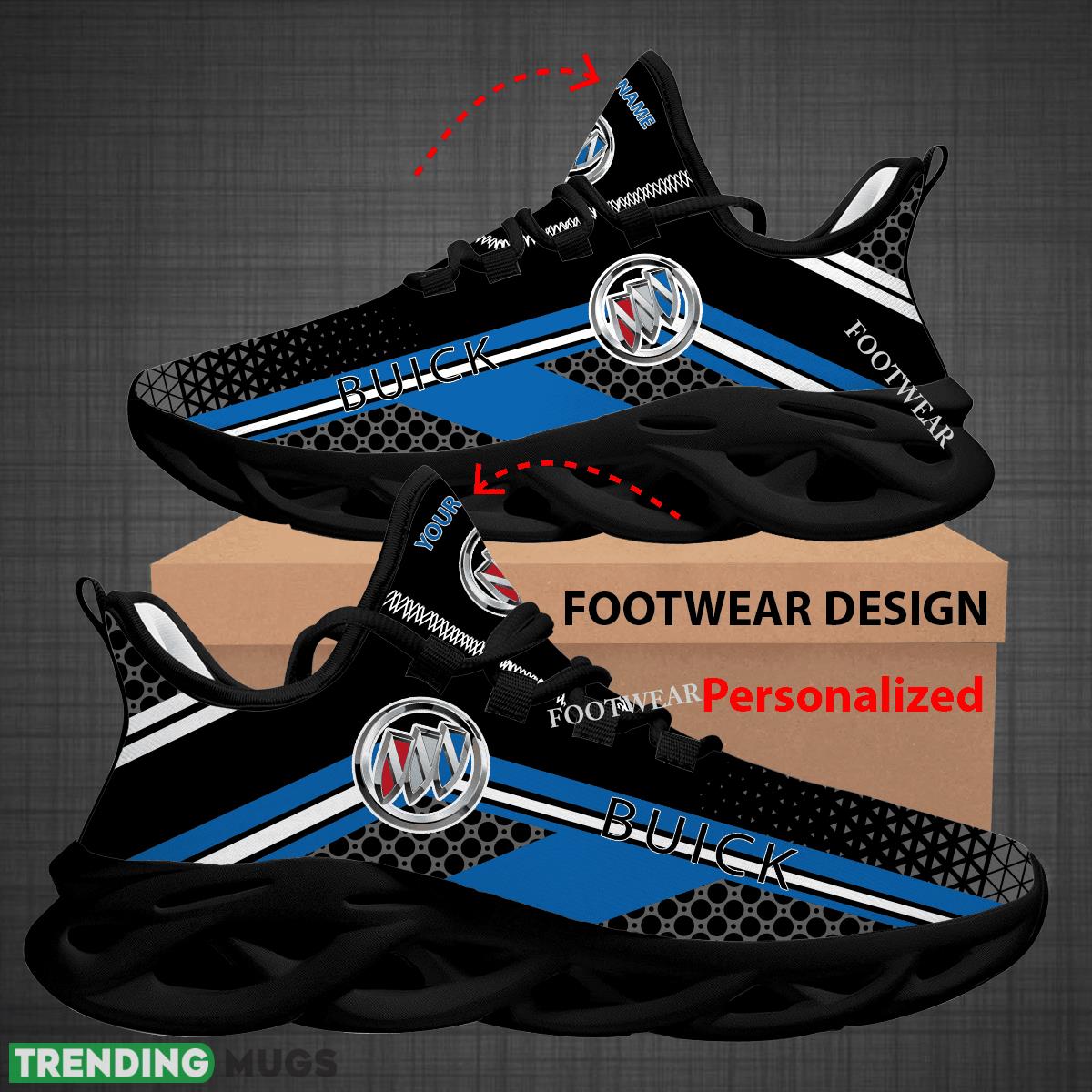 This Custom Name Car Racing BUICK Logo New Design Max Soul Shoes For Big Fans Runing Sneakers Gift is a breathable, lightweight, and comfortable casual outdoor shoe that has a unique design. It is made of a mesh fabric which makes it sweat absorbent and breathable, while the rubber bottom ensures traction, comfort, and durability. It is available in two colors: black or white sole. There are two styles of shoelace holes so you can choose your preference.