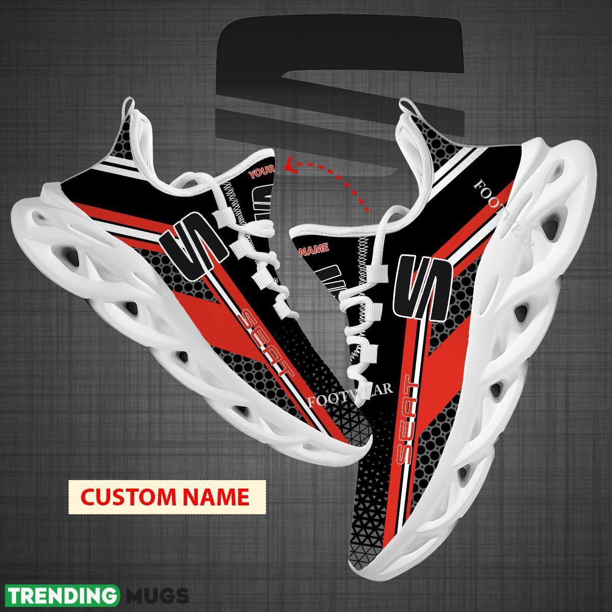 This Custom Name Car Racing Seat Logo New Design Max Soul Shoes For Big Fans Runing Sneakers Gift is a breathable, lightweight, and comfortable casual outdoor shoe that has a unique design. It is made of a mesh fabric which makes it sweat absorbent and breathable, while the rubber bottom ensures traction, comfort, and durability. It is available in two colors: black or white sole. There are two styles of shoelace holes so you can choose your preference.
