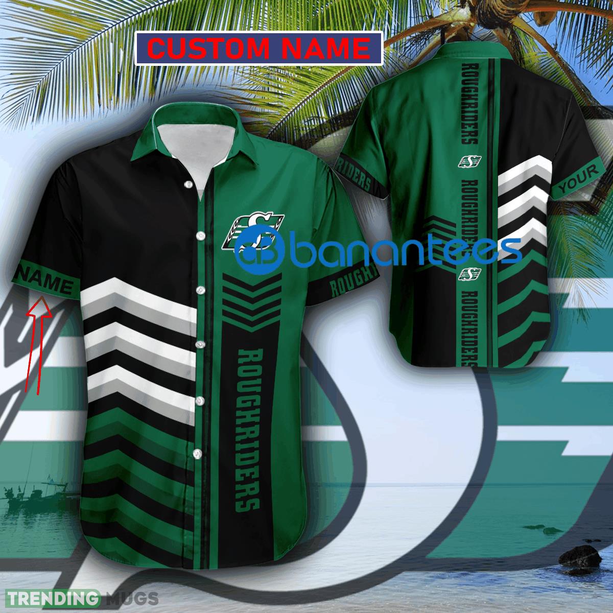 Custom Name CFL Saskatchewan Roughriders Tropical Logo AOP Hawaiian Shirt For Summer Details: