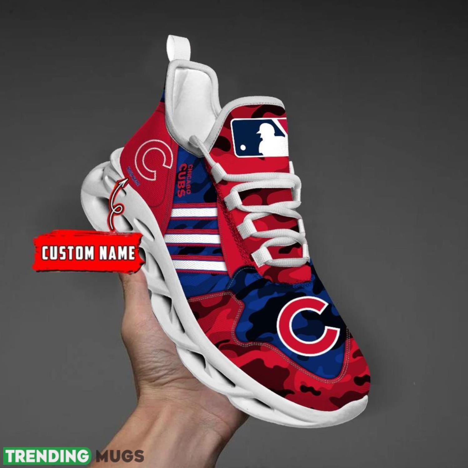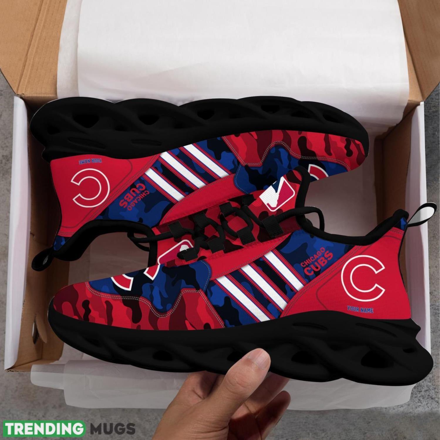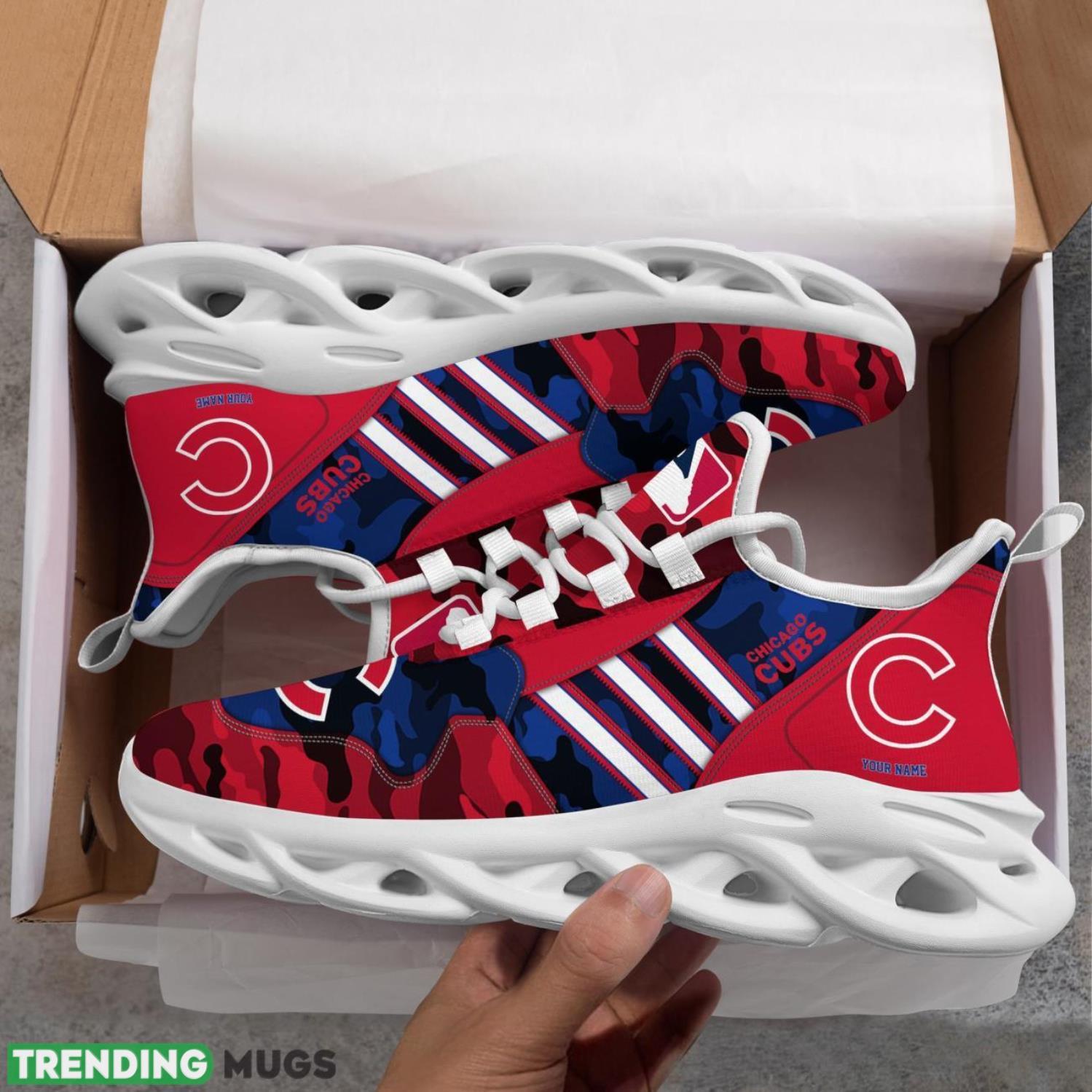 Step up your style game with our Custom Name Chicago Cubs Personalized Sneakers! These Max Soul Shoes are designed to make a bold statement while showcasing your love for the Chicago Cubs. With a trendy camo pattern and crisp white stripes, these shoes are a true fashion must-have.