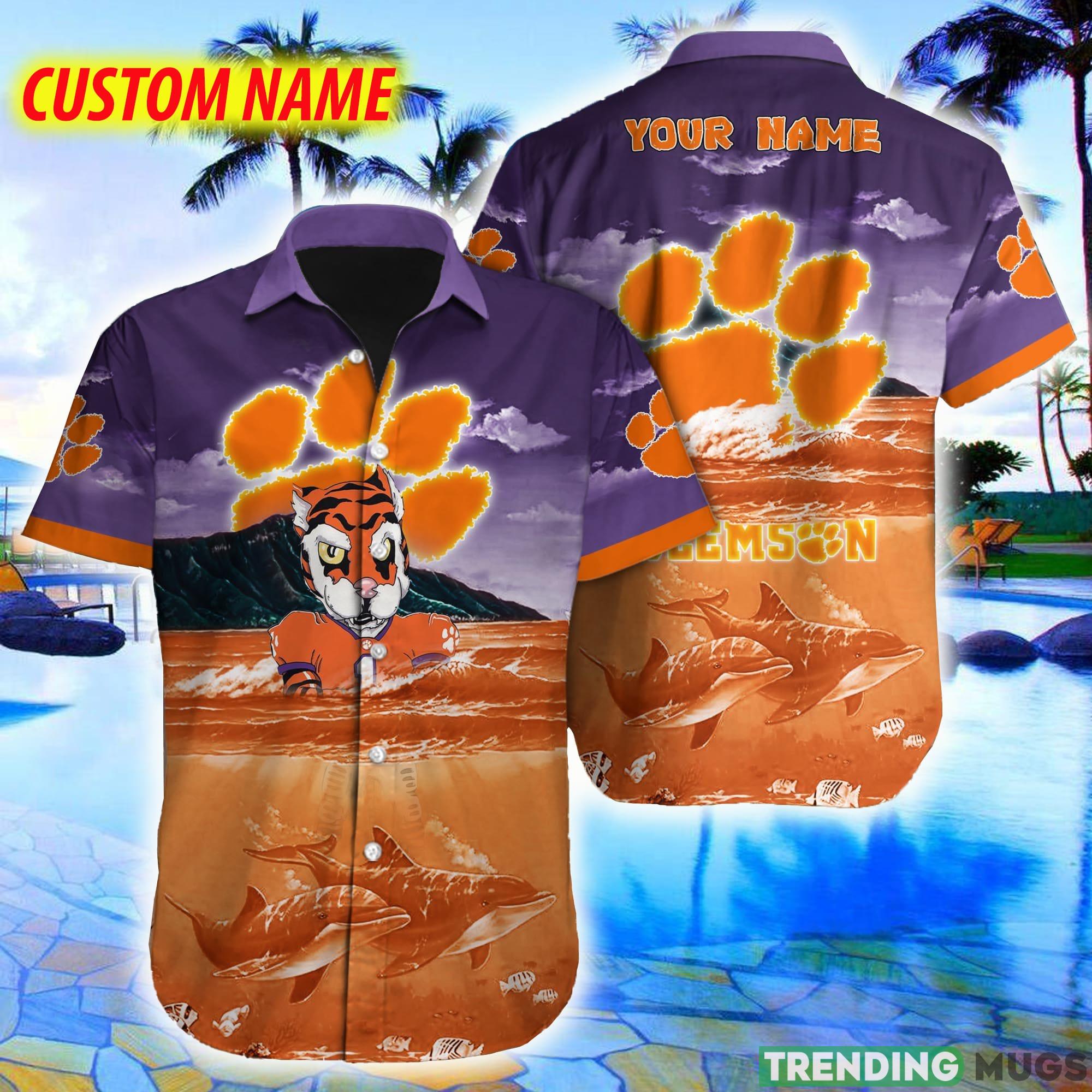 Custom Name Clemson Tigers NCAA Logo Dolphin Beach Funny Hawaiian Shirt Details: