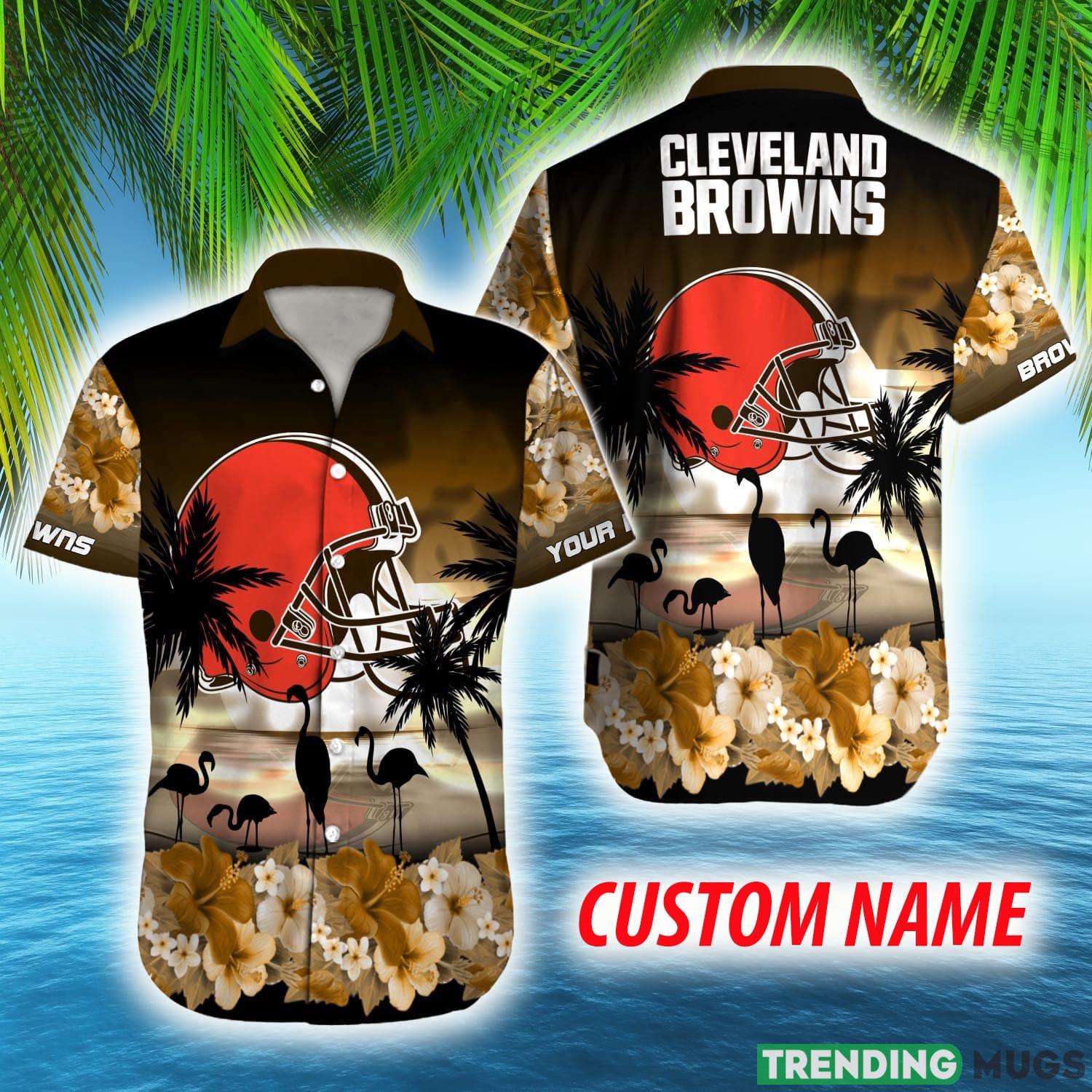 Custom Name Cleveland Browns NFL Flamingo Hibiscus For Men And Women Gift Fans Hawaiian Shirt Details:
